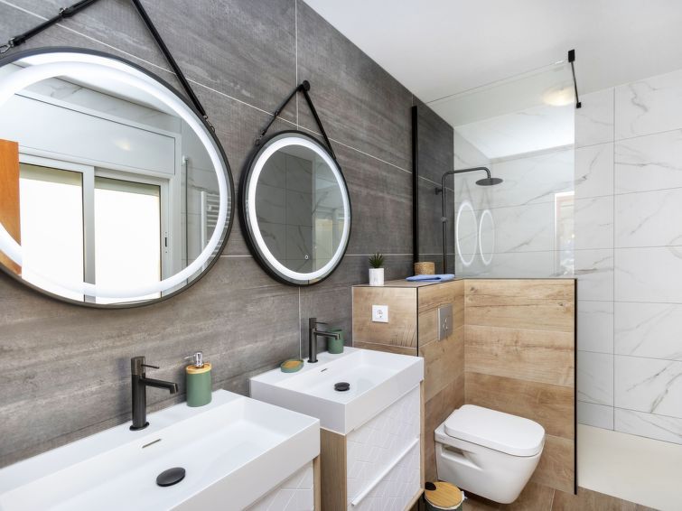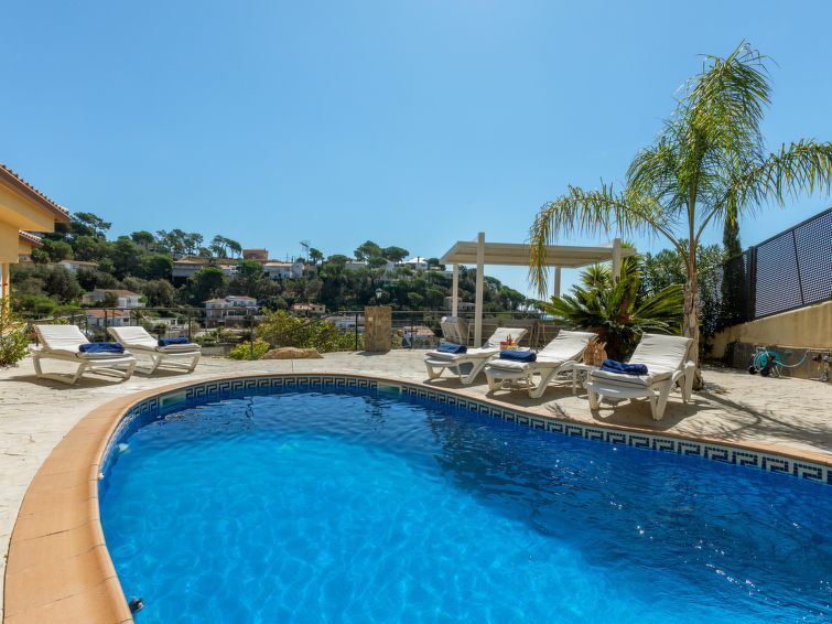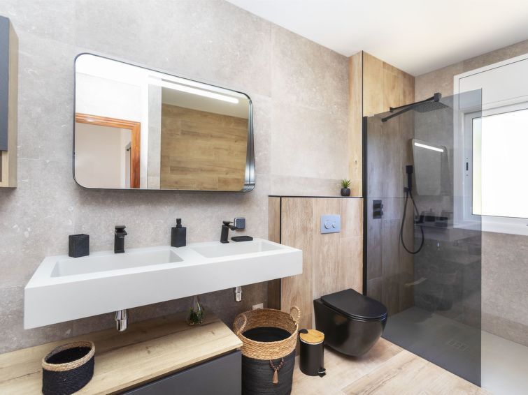 "Floradise", 7-room villa 250 m2. Spacious and bright, very comfortable and modern furnishings: living/dining room with dining table, satellite TV, international TV channels and air conditioning. Exit to the patio, to the swimming pool. 1 double bedroom with 1 french bed (160 cm, length 190 cm), bath/bidet/WC.