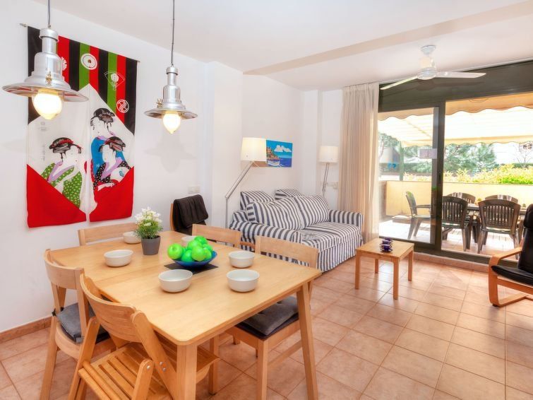 "Gardenia", 3-room apartment 55 m2, on the ground floor. Spacious and bright, practical and cosy furnishings: living/dining room with 1 sofabed (120 cm, length 190 cm), dining table, satellite TV and digital TV. Exit to the patio. 1 large room with 1 french bed (150 cm, length 190 cm).
