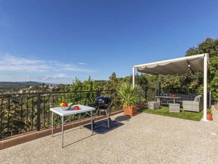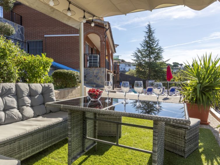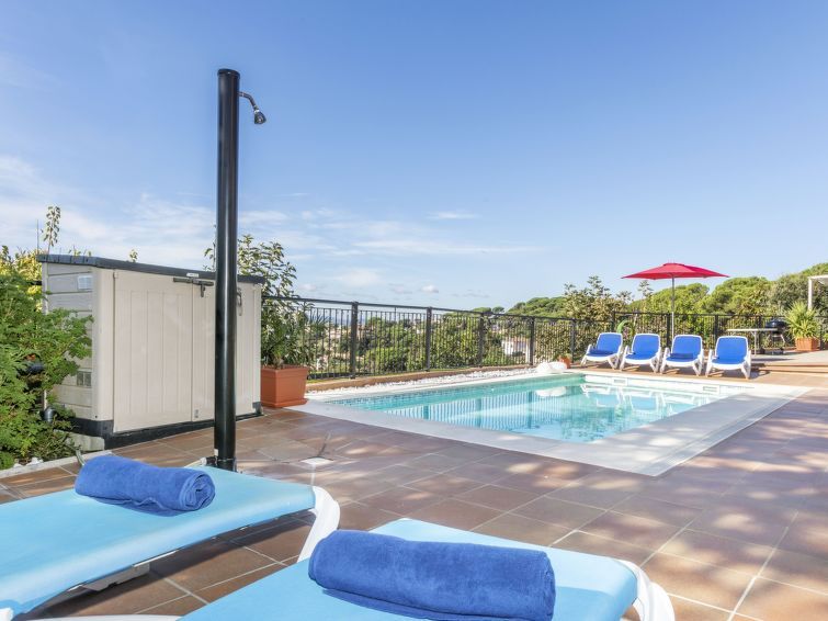 "Perla", 5-room house 175 m2. Spacious and bright, very cosy furnishings: living/dining room with dining table, digital TV and international TV channels. Exit to the patio, to the swimming pool. 1 double bedroom with 2 beds (90 cm, length 190 cm), air conditioning. Kitchen (4 hot plates, dishwasher, toaster, kettle, microwave, freezer, electric coffee machine).