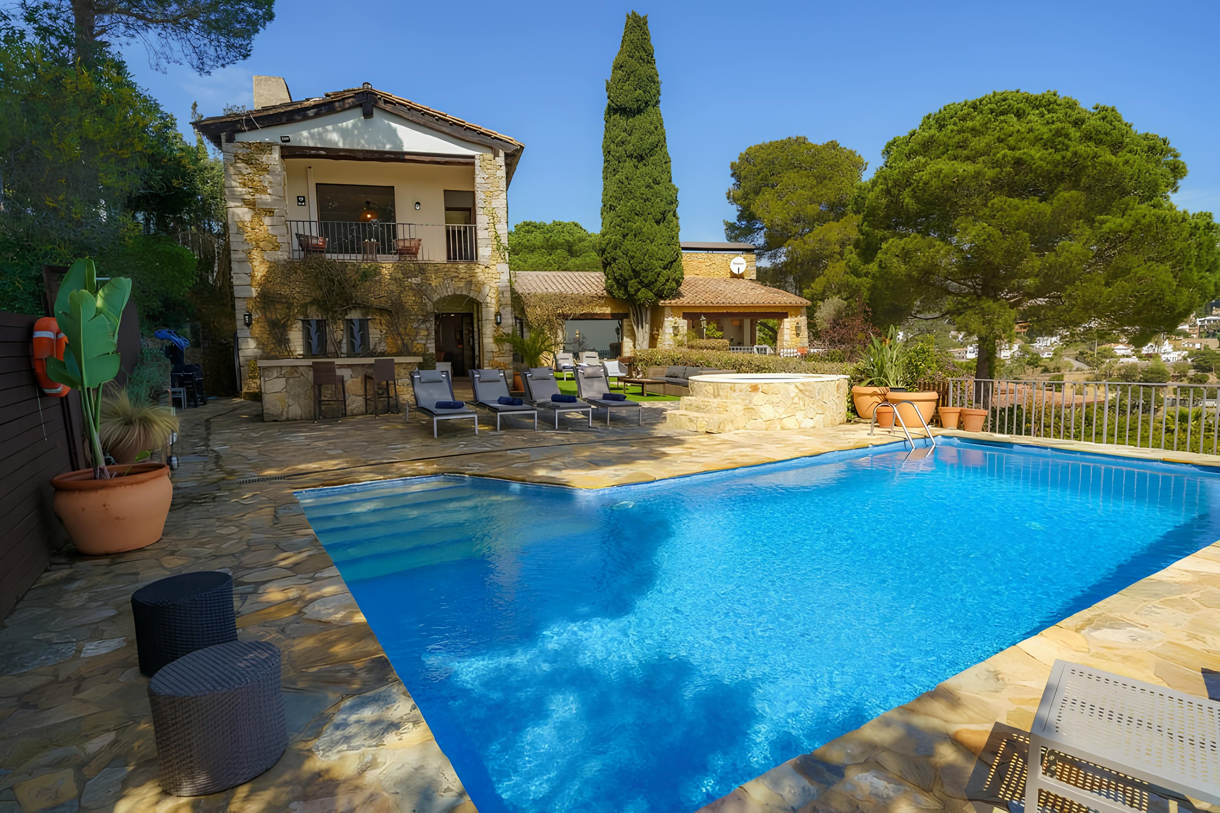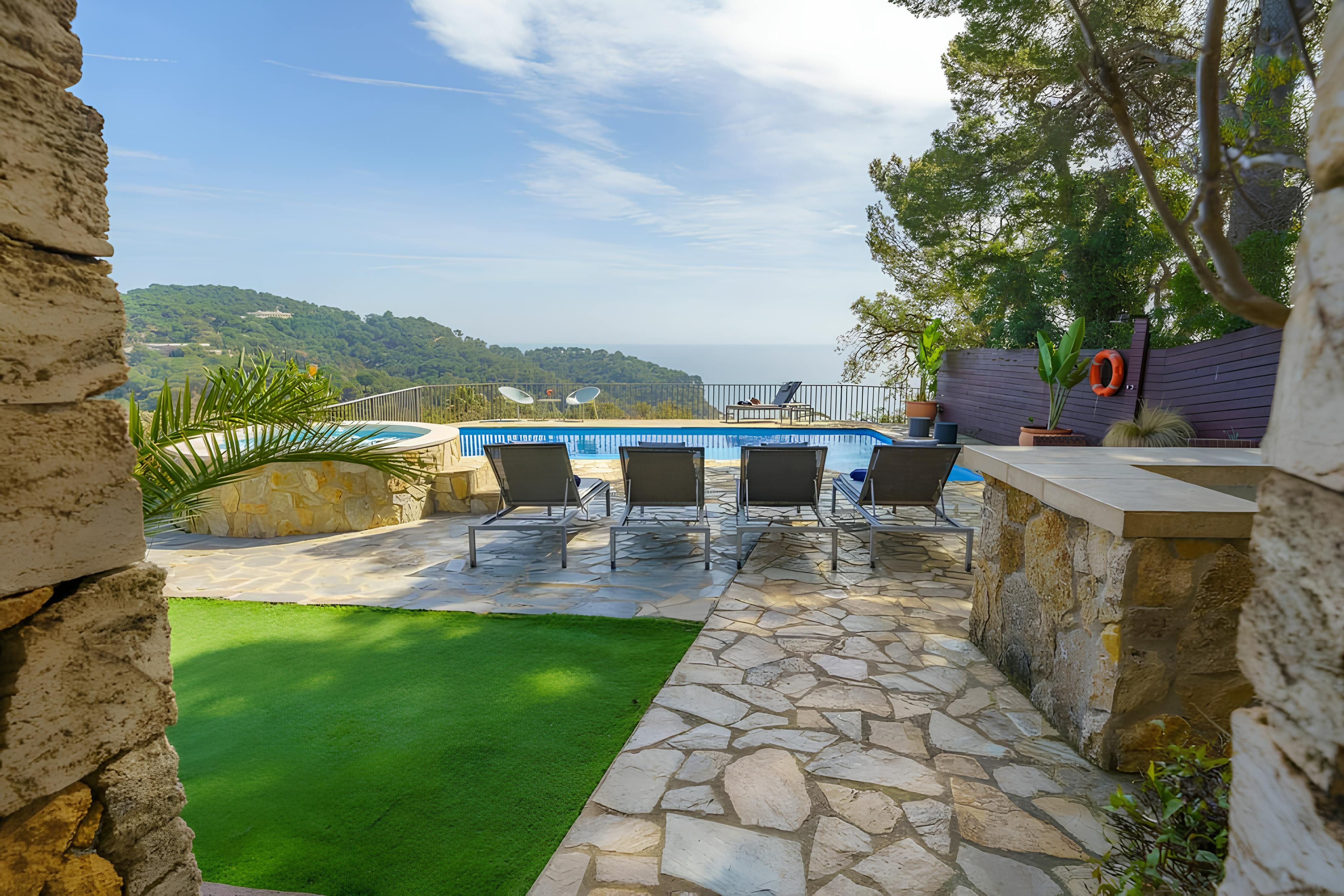 Just 300 metres from the turquoise waters and golden sands of Cala Canyella, this villa makes slipping into holiday mode feel effortless. Bedrooms are split between the main house and a guest house, offering a little extra privacy for friends or families. Life here is very much lived outdoors, with a choice of balconies and terraces for soaking up the sun or long alfresco lunches. Spend your days lounging by the pool with the sea stretching out before you, unwind in the jacuzzi or charter a boat and explore this stunning stretch of coastline from the water.