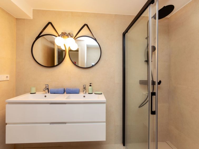 After all my questions were answered by phone, with a lot of patience, booking was made. The holiday home is located on a hill in urb. Mont Lloret. The paved road became a dirt road. That was what they had told us. Too bad we were not allowed to park on their parking lot - safe. Around the house a wall with a fence. Indoor oasis of peace. Lovely beds. Well-equipped kitchen. Good bathrooms. Laundry room. Sunbeds without cushions. Poor sofa. Contact persons helpful. A few minus points, otherwise fine.