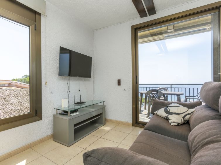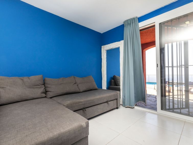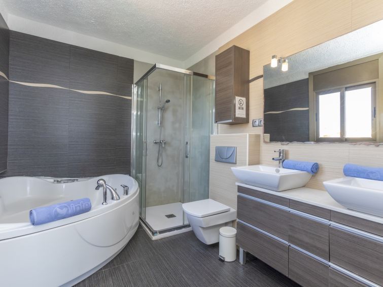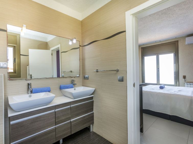 "Solar", 5-room house 160 m2. Living/dining room. Open kitchen (4 hot plates, oven, dishwasher, toaster, kettle, microwave, freezer, electric coffee machine) with dining table and digital TV. Exit to the terrace. Sep. WC. On the lower ground floor: living room with 1 folding bed (90 cm, length 190 cm), digital TV and air conditioning.