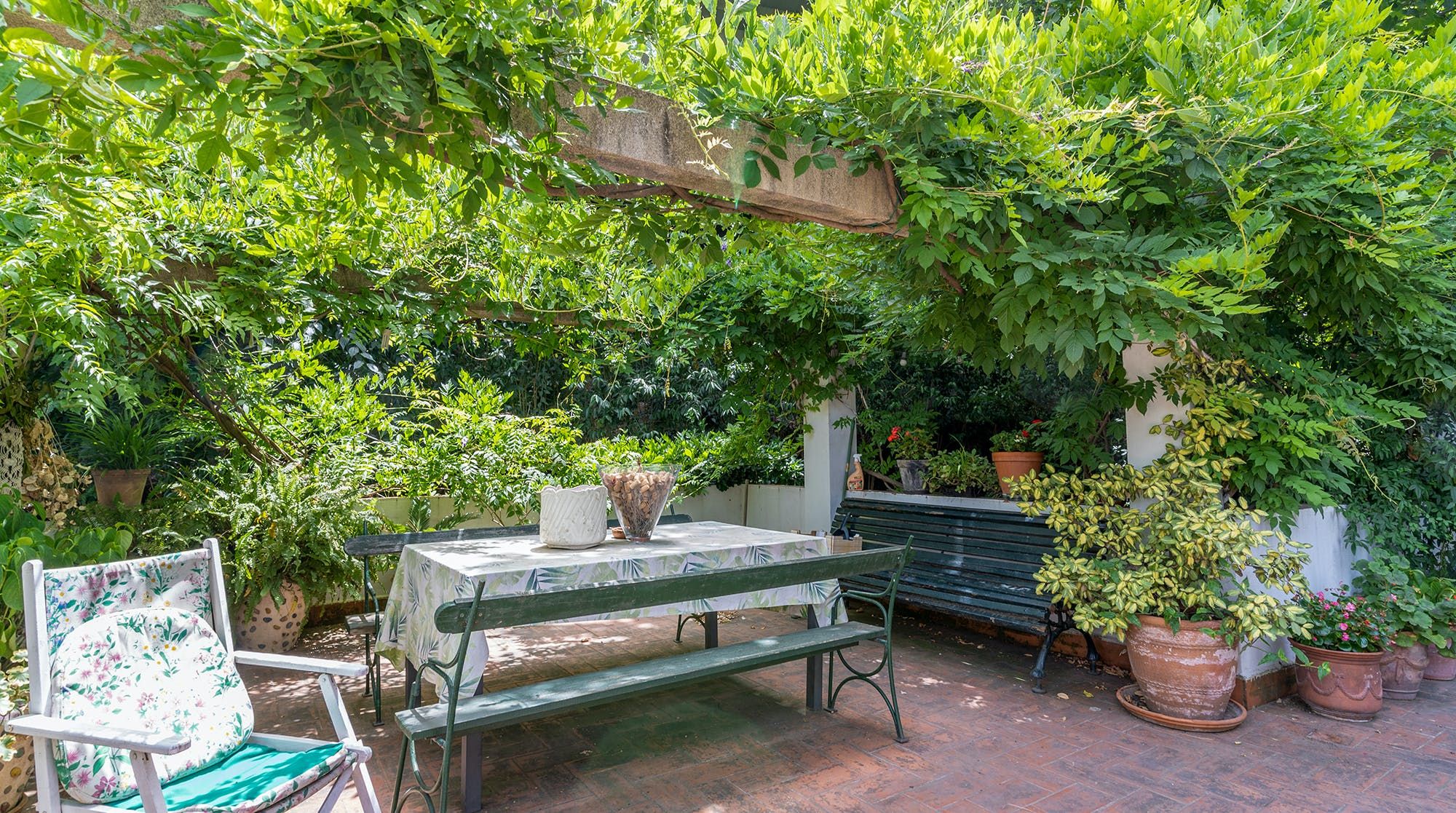 The apartment is full of character – while it has been meticulously renovated, it still retains all of its period elegance, and the many quaint pieces and lovely furnishings scattered throughout will make you feel right at home. There’s plenty of room inside to kick off your shoes and relax, whether on one of the comfy sofas or in the shady serenity of the garden. We love the wood beams on the ceilings and the gorgeous tiled floors – not to mention all the family treasures you’ll encounter everywhere you turn.