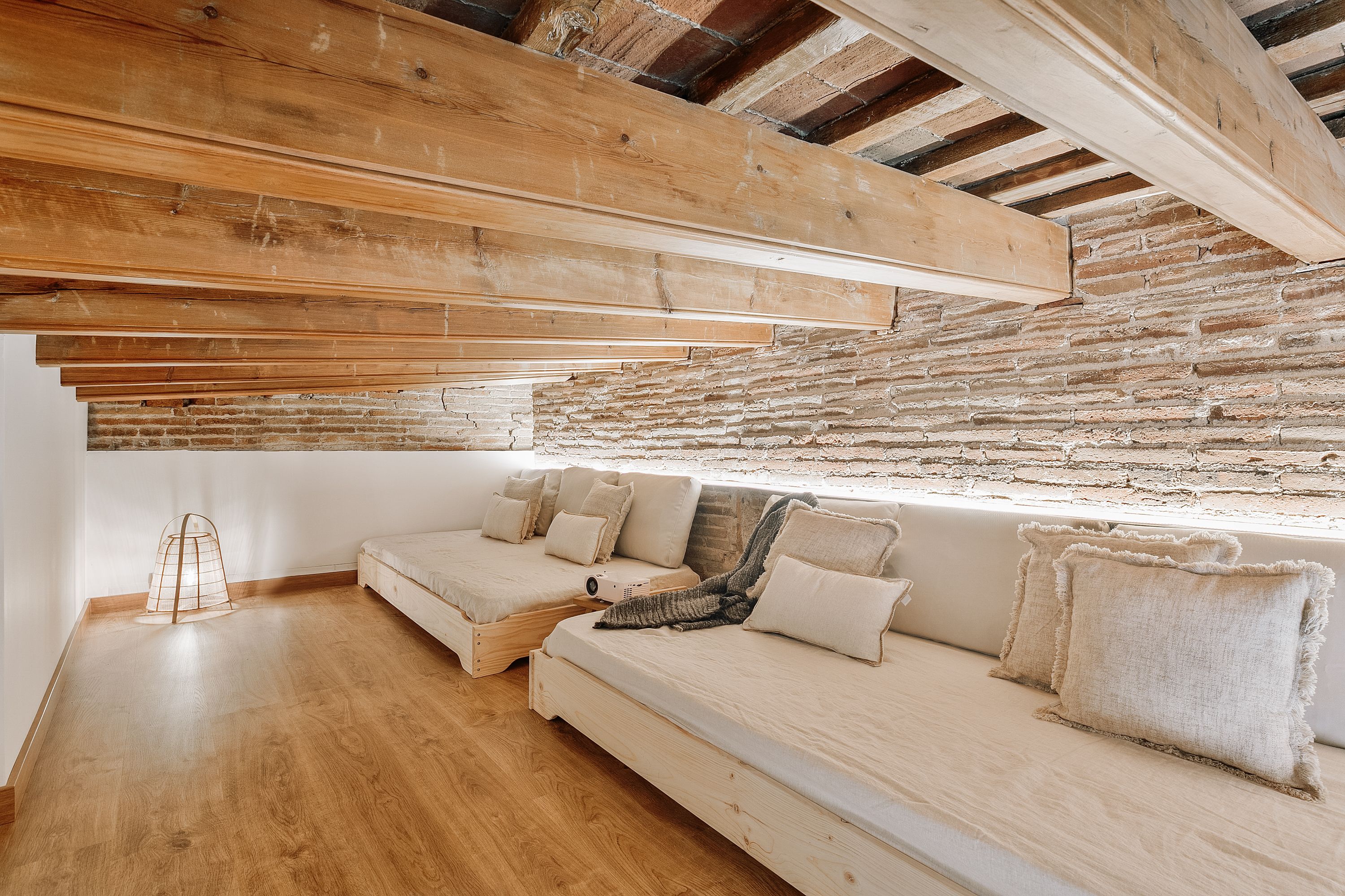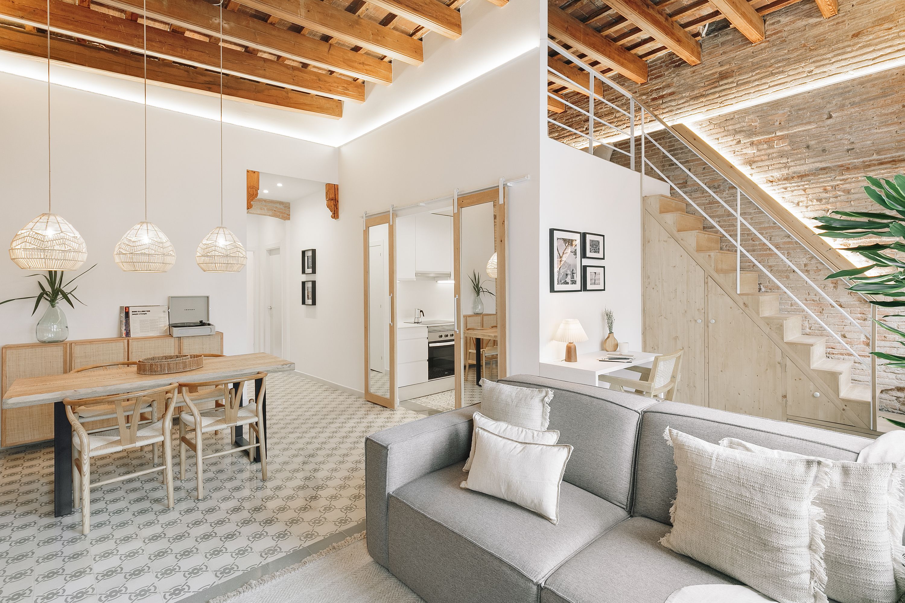 A winner for families, this home sits amid Sarrià-Sant Gervasi's green parks, shops, and cafe-dotted streets. While it's a quieter spot in the city, the locals love the small-town vibe. Our favourite thing about this apartment is its large terrace, ideal for fresh-air hangouts and alfresco dining. Above the stylish living room, kids can claim the mezzanine bedroom – a cosy nook with low ceilings. You'll have a desk here for remote business, too. Yet the nearby Sarrià station makes work commutes and sightseeing easy.