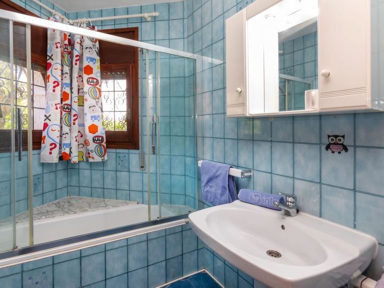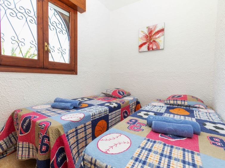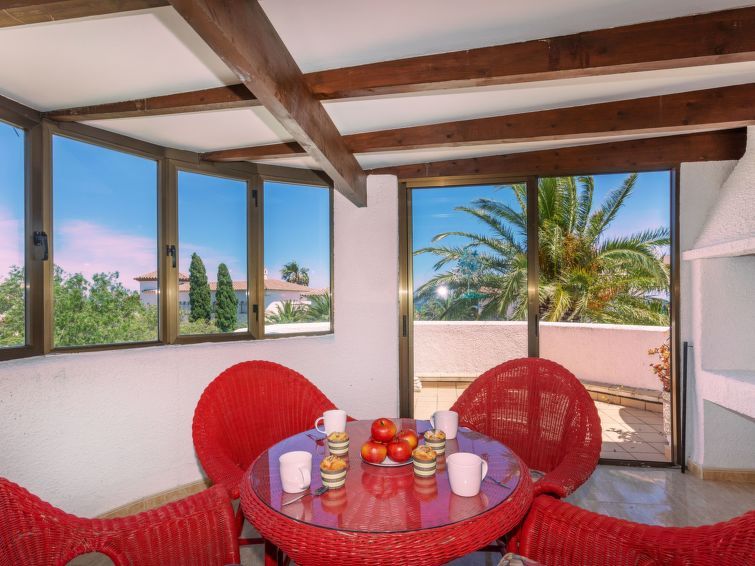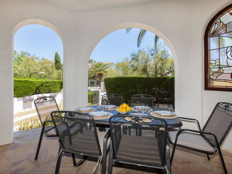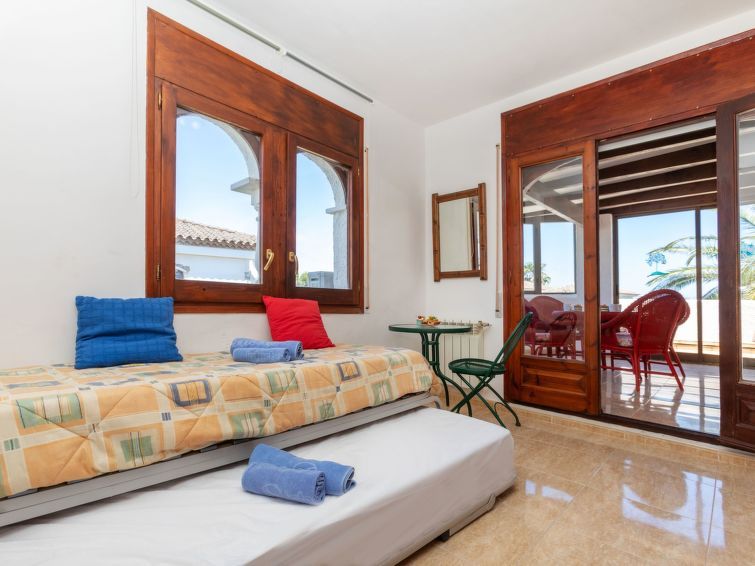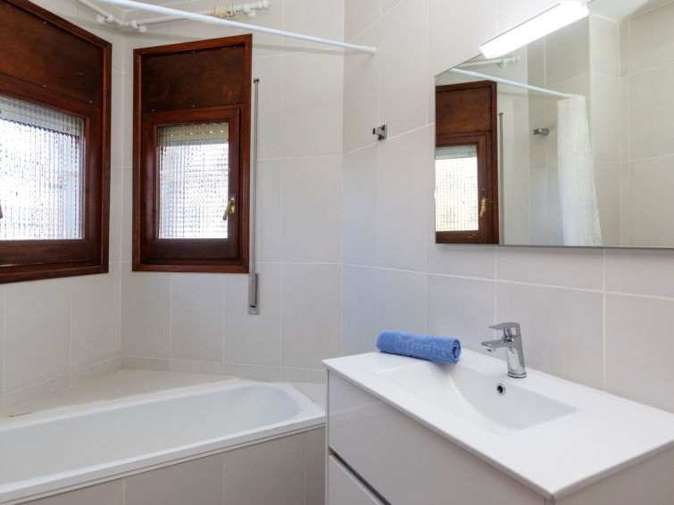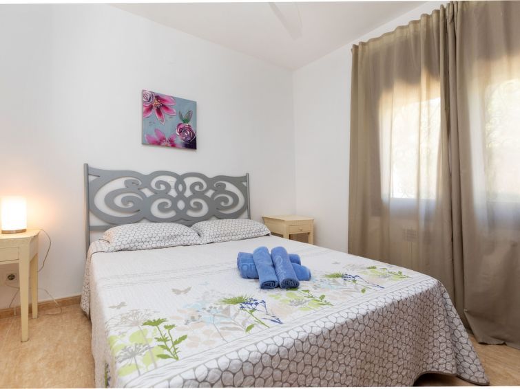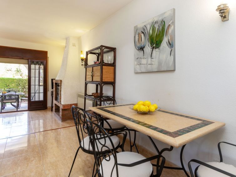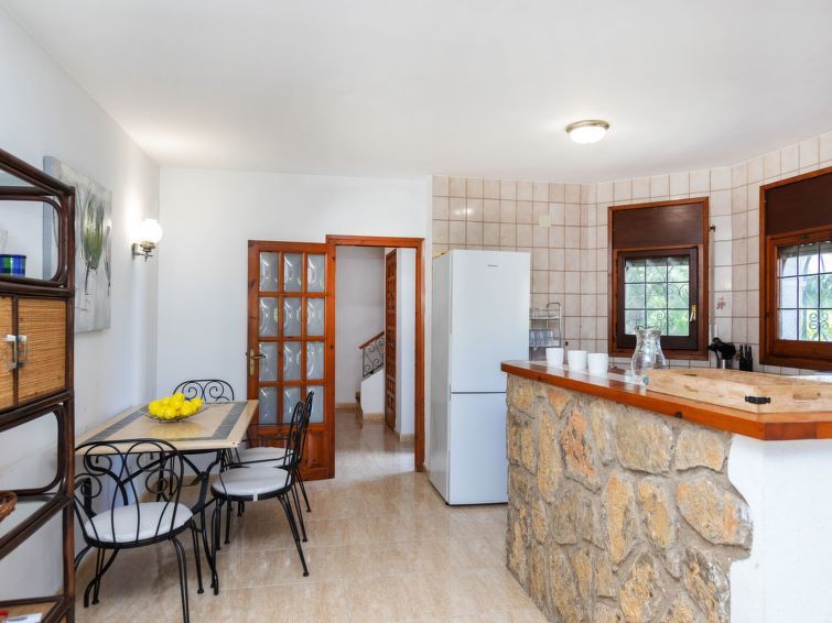 "Avellaner", 4-room terraced house 120 m2 on 2 levels. Comfortable and cosy furnishings: living/dining room with dining table and satellite TV. Exit to the patio. 1 room with 1 french bed (150 cm, length 190 cm), fan. Open kitchen (oven, dishwasher, 3 ceramic glass hob hotplates, toaster, microwave, electric coffee machine).