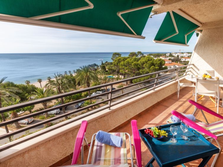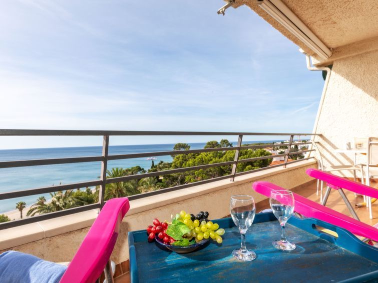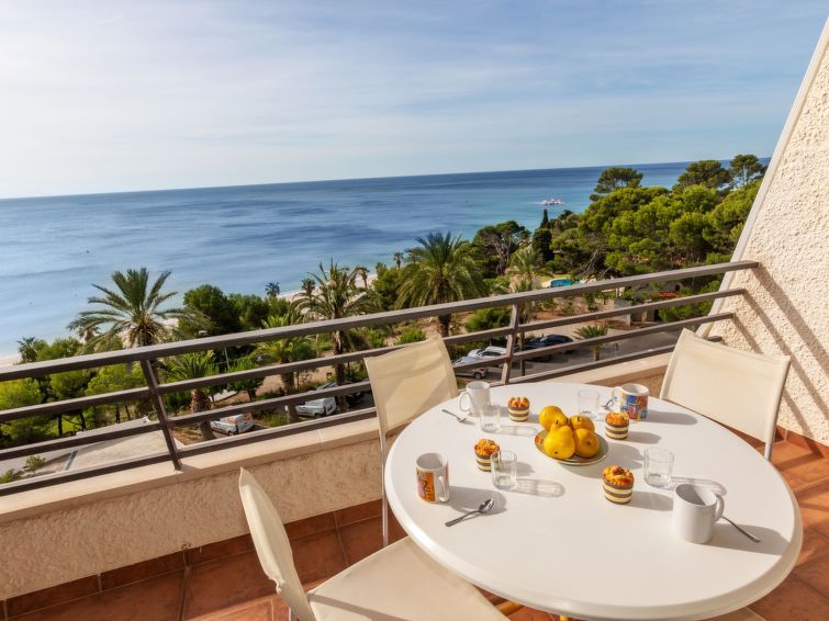 "Bahia Palace I", 4-room apartment 70 m2. Comfortable and cosy furnishings: living/dining room with dining table and digital TV. Exit to the balcony. 2 rooms, each room with 2 beds (90 cm). 1 room with 1 x 2 bunk beds (90 cm). Open kitchen (oven, 4 ceramic glass hob hotplates, toaster, kettle, microwave, electric coffee machine).