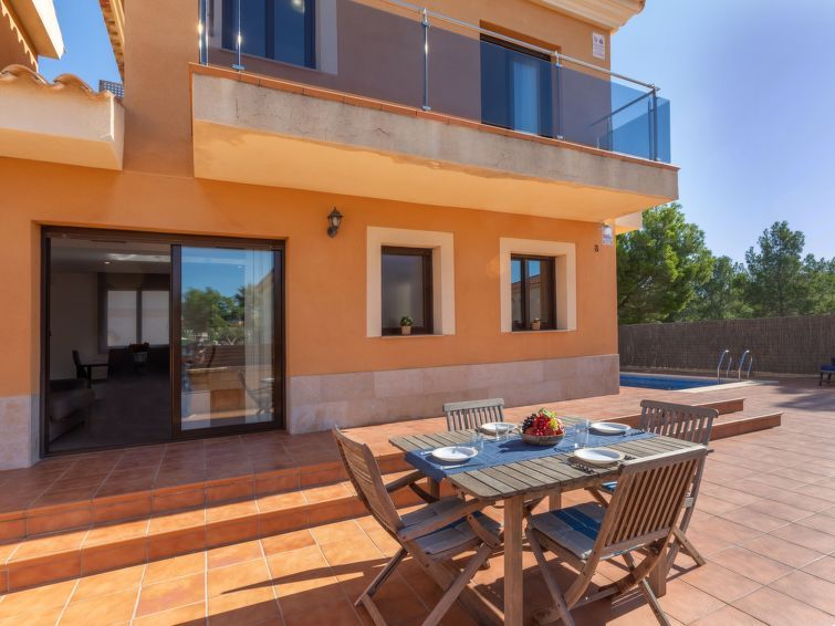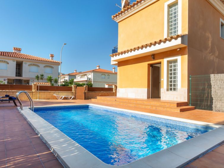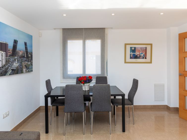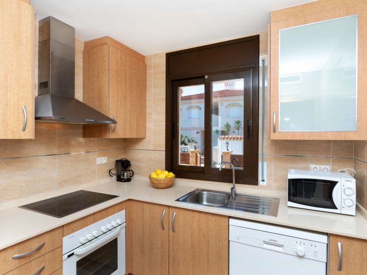 "Paloma 2/3", 6-room terraced house 240 m2 on 2 levels. Entrance hall with air conditioning. Living/dining room with 2 sofabeds (135 cm), dining table, satellite TV and digital TV. 2 rooms, each room with 1 french bed (135 cm). 2 rooms, each room with 2 beds (90 cm). Kitchen (oven, dishwasher, 4 ceramic glass hob hotplates, toaster, kettle, microwave, electric coffee machine).