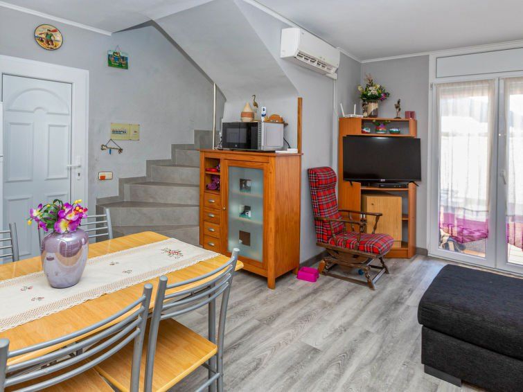 "Eden Park 2", 4-room villa 65 m2 on 2 levels. Comfortable and cosy furnishings: living/dining room with dining table, digital TV and air conditioning. Exit to the patio. 1 room with 1 bed (135 cm), 1 x 2 bunk beds (90 cm), digital TV. Kitchen (oven, 4 ceramic glass hob hotplates, toaster, kettle, microwave, electric coffee machine).
