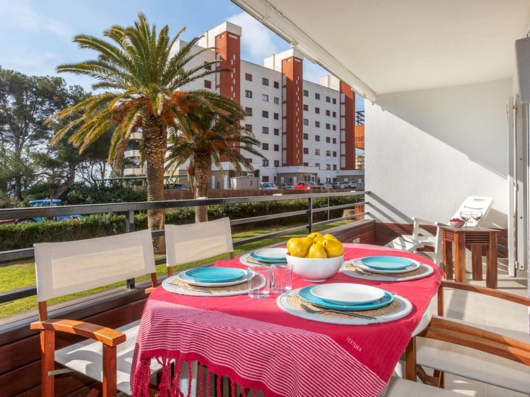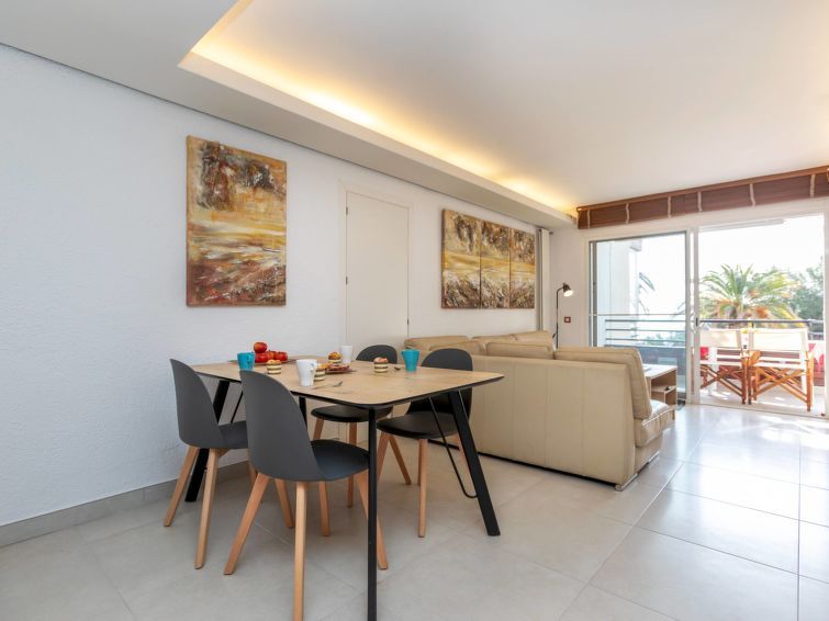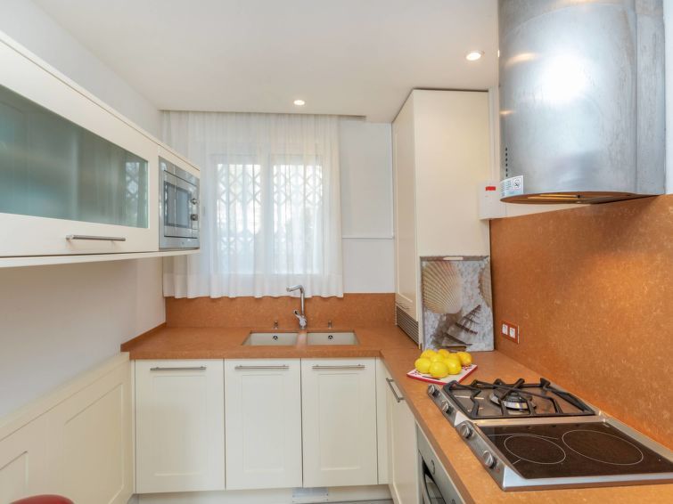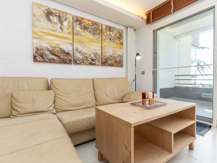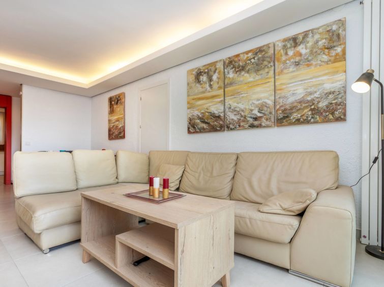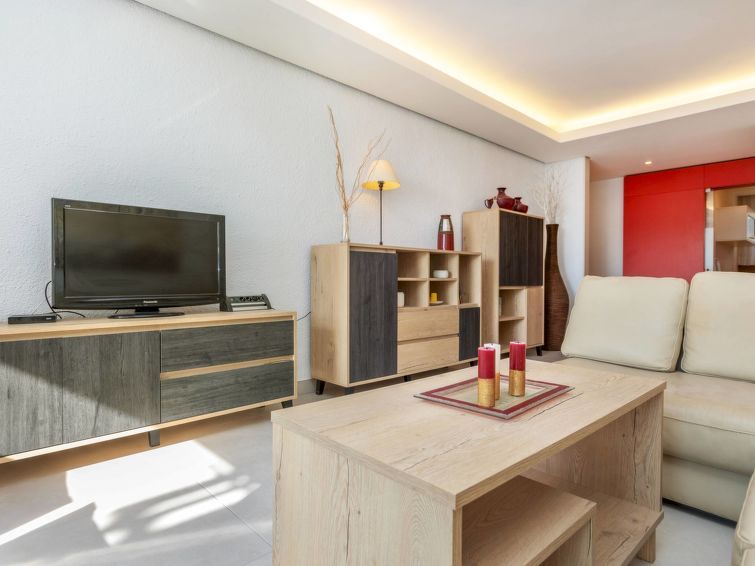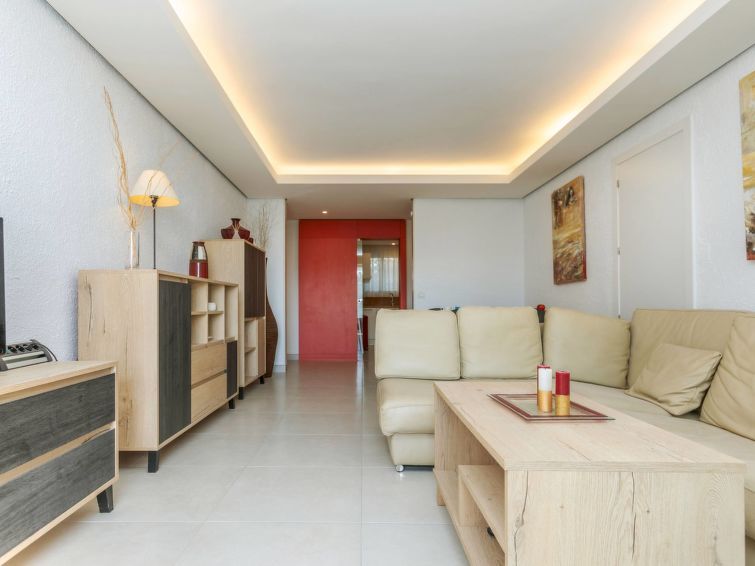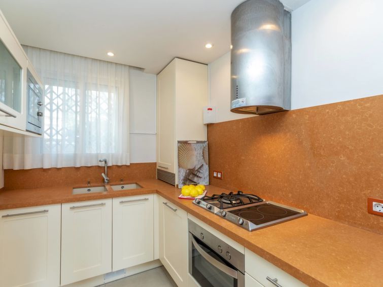 "Edificio Panorama", 3-room apartment 103 m2, on the ground floor. Comfortable and cosy furnishings: living/dining room with dining table, satellite TV and digital TV. Exit to the balcony. 1 room with 1 x 2 bunk beds (90 cm). 1 room with 1 french bed (150 cm, length 190 cm), fan. Exit to the balcony.