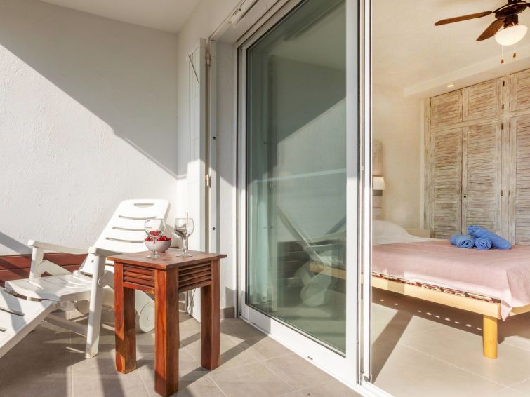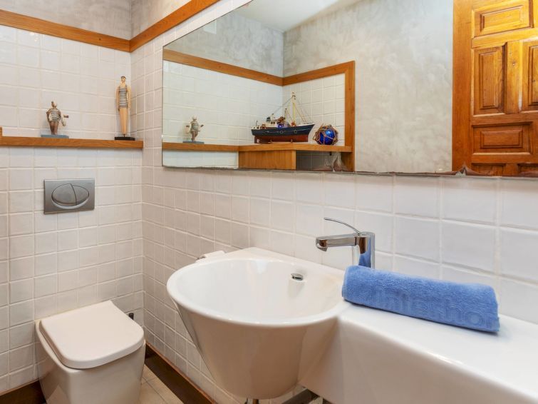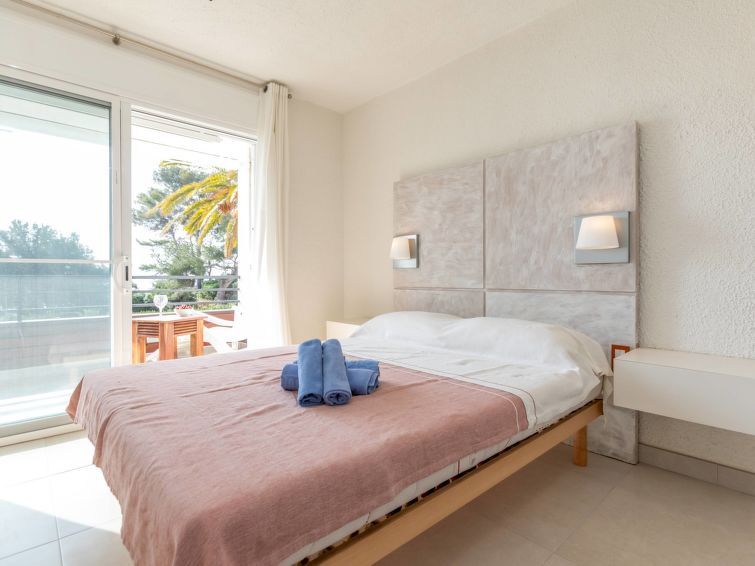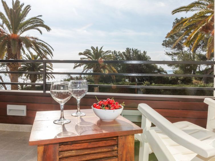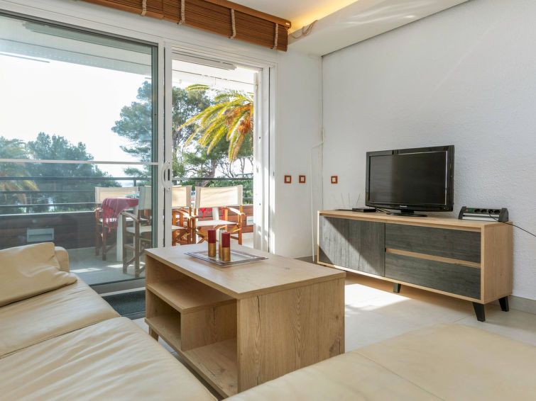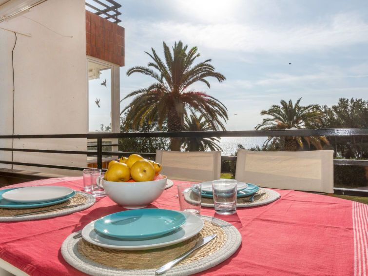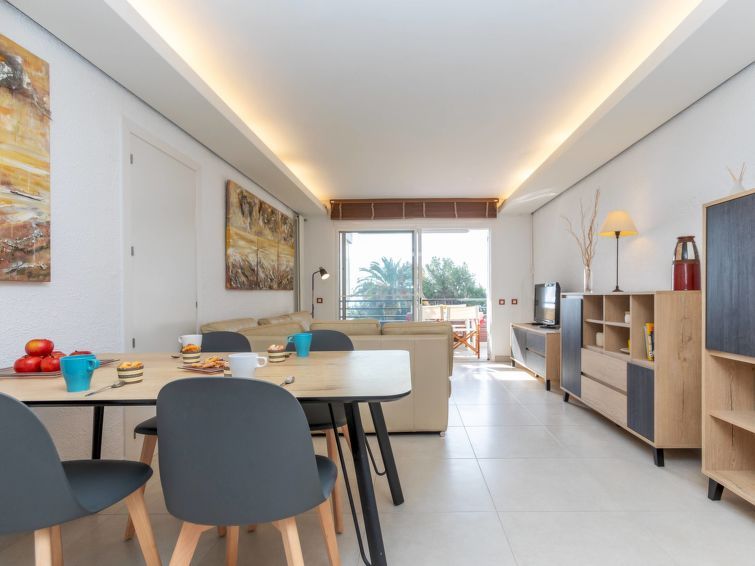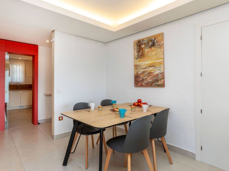 "Edificio Panorama", 3-room apartment 103 m2, on the ground floor. Comfortable and cosy furnishings: living/dining room with dining table, satellite TV and digital TV. Exit to the balcony. 1 room with 1 x 2 bunk beds (90 cm). 1 room with 1 french bed (150 cm, length 190 cm), fan. Exit to the balcony.