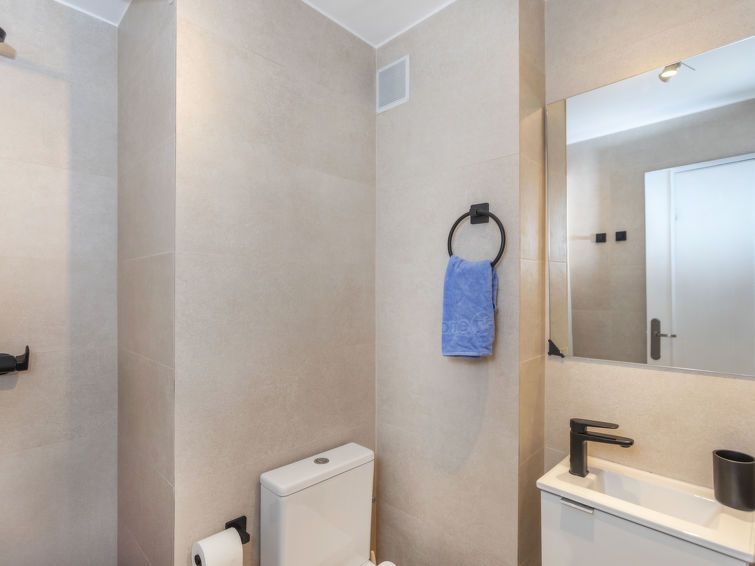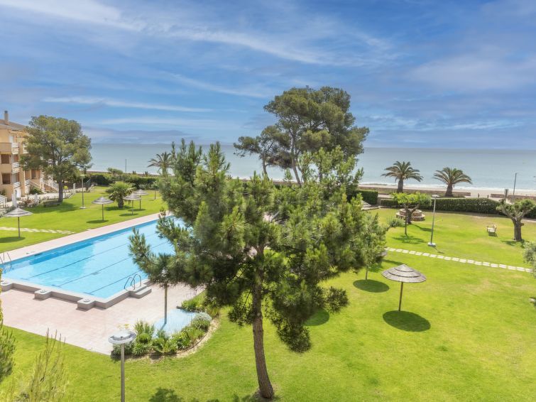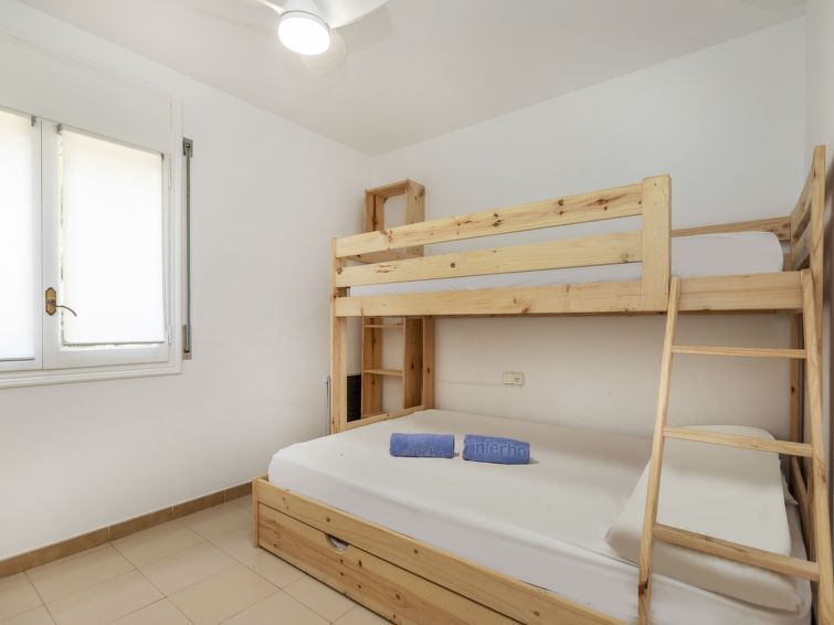 "Guardamar", 3-room apartment 65 m2. Practical and comfortable furnishings: living/dining room 25 m2 with dining table and digital TV. Exit to the terrace. 1 room with 1 french bed (140 cm, length 200 cm), bath/bidet/WC. Exit to the terrace. 1 room with 1 x 2 bunk beds (90 cm), 1 french bed (140 cm), air conditioning.