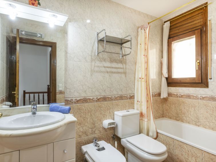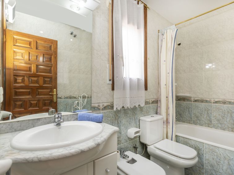 "Noguera", 5-room terraced house 140 m2 on 2 levels. Practical and comfortable furnishings: living/dining room with TV and digital TV (flat screen), air conditioning and forced-air heating. Exit to the terrace. 1 room with 1 bed (90 cm), 1 french bed (150 cm). Open kitchen (oven, dishwasher, 4 ceramic glass hob hotplates, toaster, kettle, microwave, electric coffee machine).