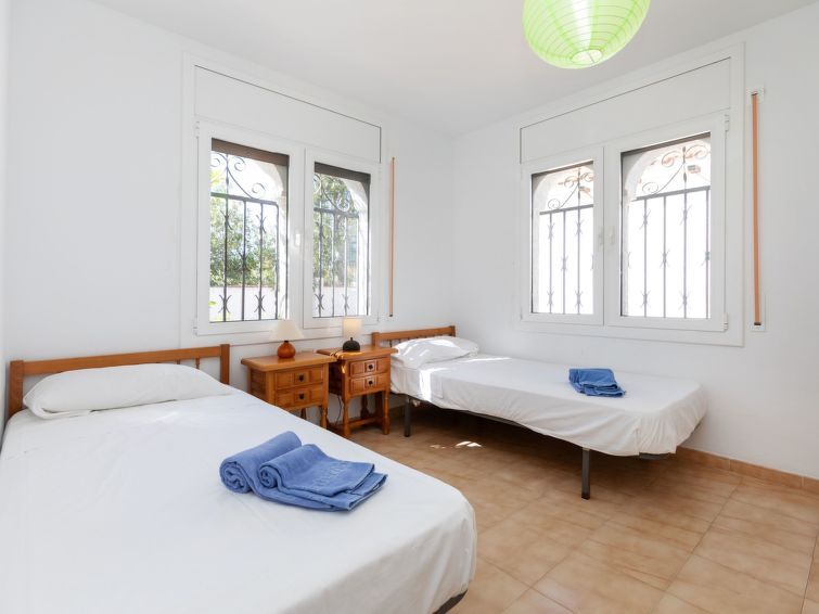 4-room villa 150 m2, west facing position. Simple furnishings: living/dining room 30 m2 with dining table and digital TV. Exit to the terrace, to the swimming pool. 1 room 12 m2 with 2 beds (90 cm). 2 rooms 9 m2, each room with 2 beds (90 cm). Kitchen (oven, dishwasher, 4 ceramic glass hob hotplates, toaster, kettle, microwave, electric coffee machine).