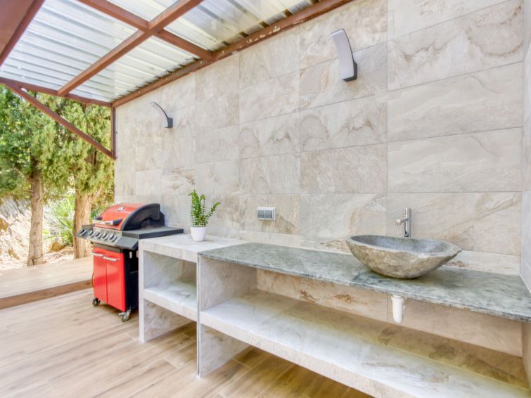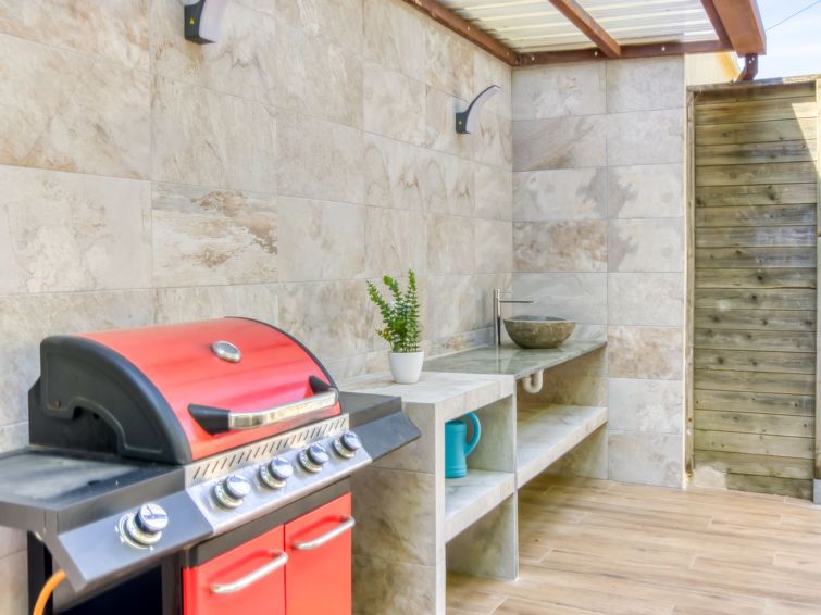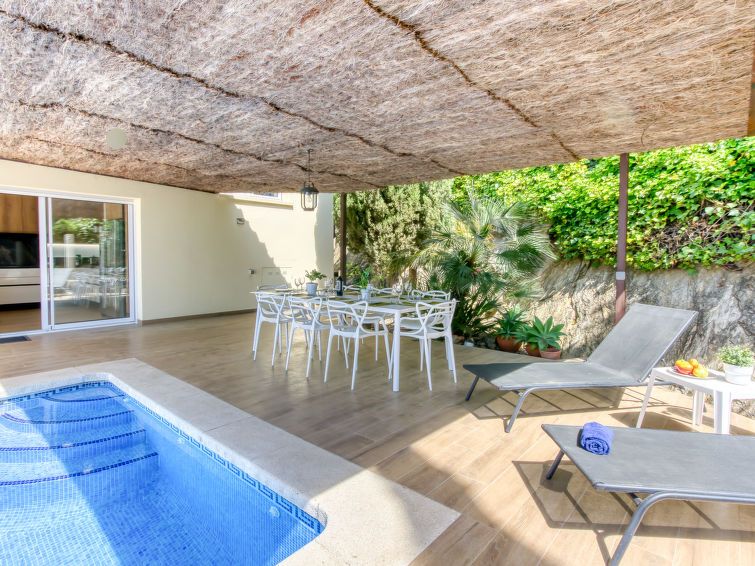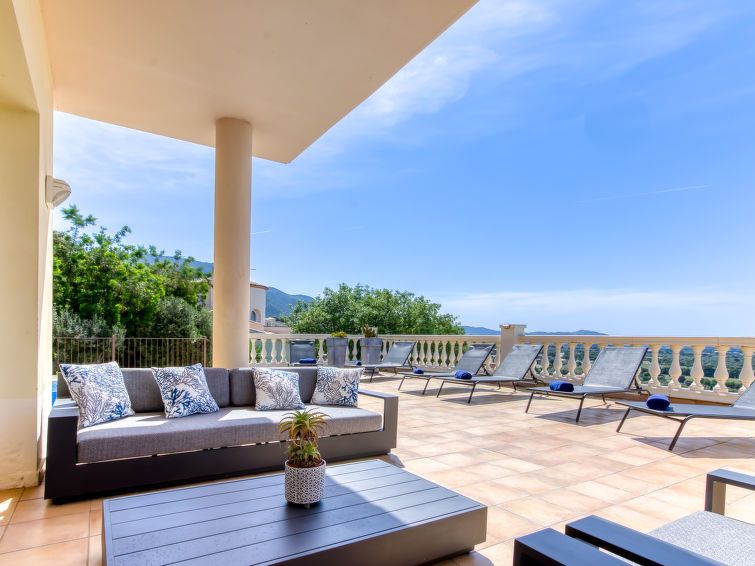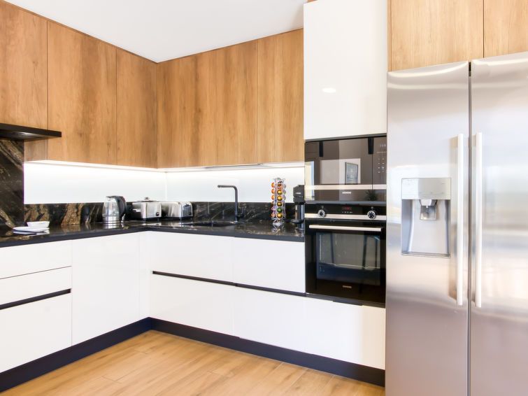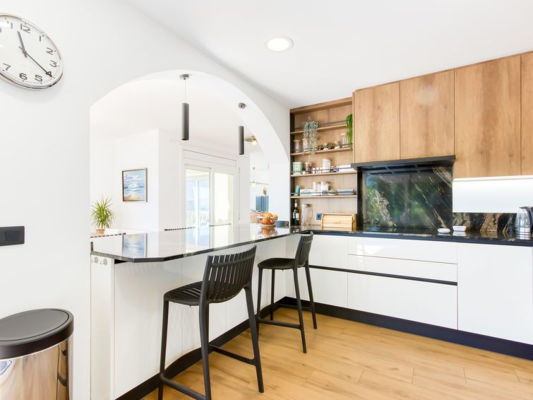 6-room villa 318 m2 on 4 levels. Spacious and bright, modern and stylish furnishings: living/dining room with dining table, satellite TV and digital TV (flat screen). Exit to the terrace, to the swimming pool. Large, open kitchen (oven, dishwasher, 3 induction hot plates, toaster, kettle, microwave, freezer, electric coffee machine).
