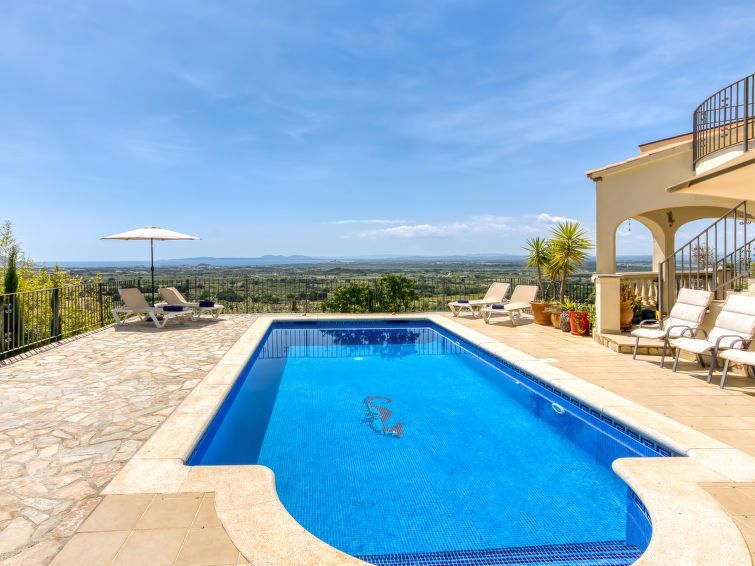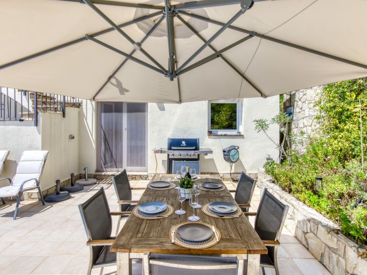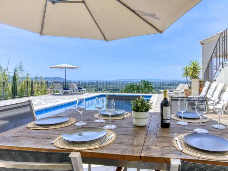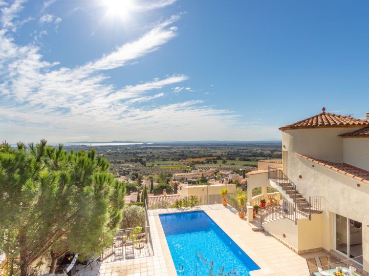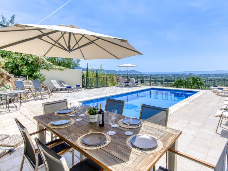 5-room villa 224 m2 on 2 levels. Spacious and bright, comfortable and stylish furnishings: living/dining room 39 m2 with satellite TV. Exit to the terrace, to the swimming pool. 1 room 15 m2 with 1 french bed (160 cm, length 190 cm), shower/WC, air conditioning and forced-air heating.