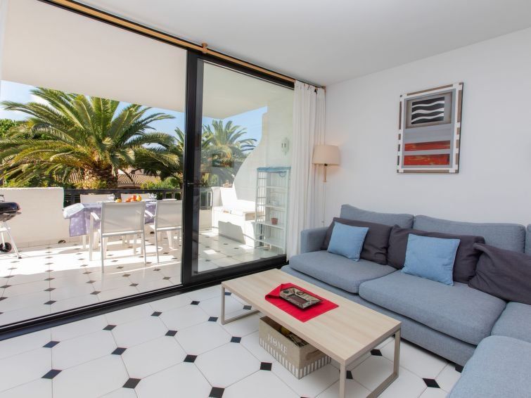 "Ducado de Golf Blue", 2-room apartment 65 m2 on 1st floor. Object suitable for 4 adults. Practical furnishings: living/dining room, on 2 levels with dining table, digital TV, flat screen and air conditioning. Exit to the terrace. 1 room with 1 french bed (160 cm, length 190 cm). 1 room with 2 beds (90 cm, length 190 cm).