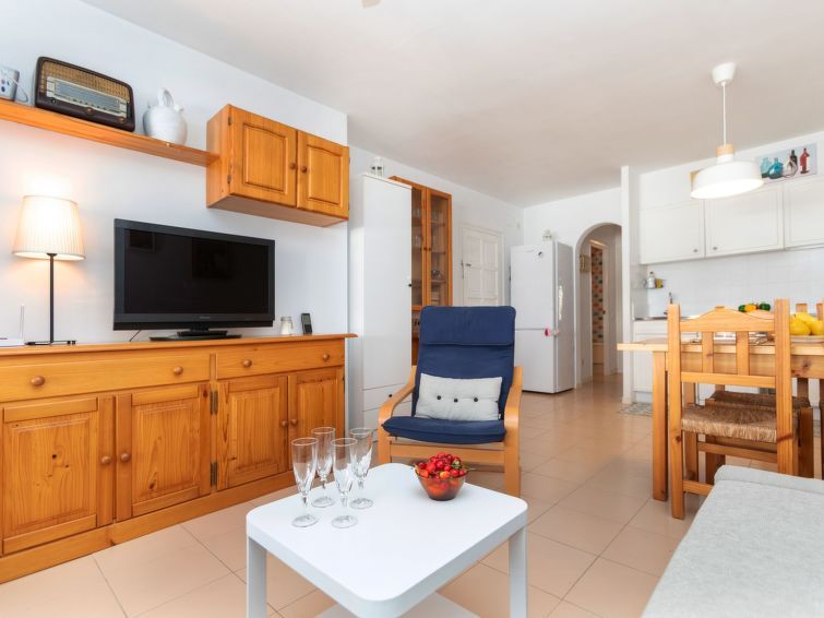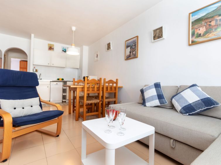 "El Coto G", 3-room apartment 65 m2 on 2nd floor. Bright, practical and comfortable furnishings: living/dining room with dining table. 1 room with 1 french bed (160 cm, length 190 cm). 1 room with 1 x 2 bunk beds (90 cm, length 190 cm). Open kitchen (dishwasher, 3 induction hot plates, toaster, kettle, microwave).