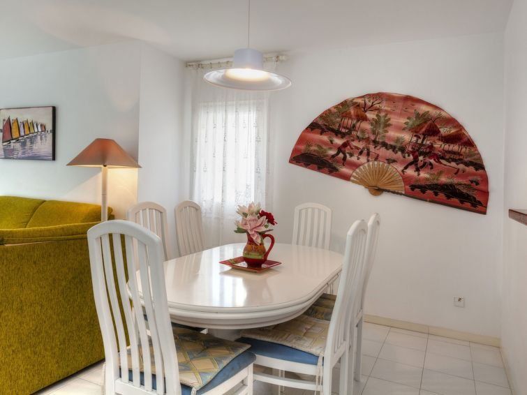 "Golf Royal Delta", 4-room apartment 70 m2 on 1st floor. Practical furnishings: living/dining room with dining table and digital TV. Exit to the terrace. 1 room with 1 french bed (135 cm, length 190 cm), bath/bidet/WC. 1 room with 2 beds (80 cm, length 195 cm). 1 room with 1 double bed (2 x 80 cm, length 185 cm).