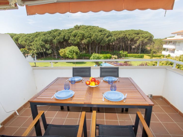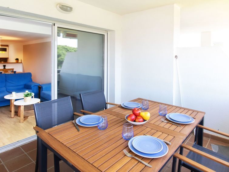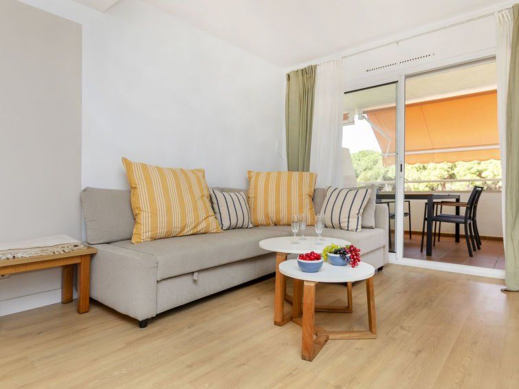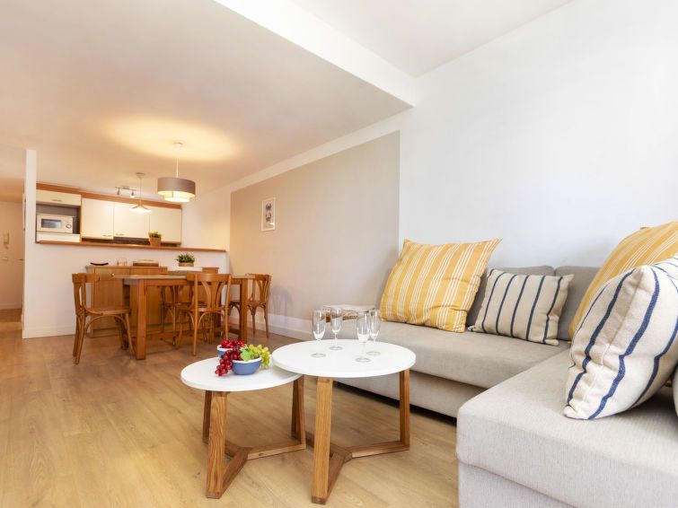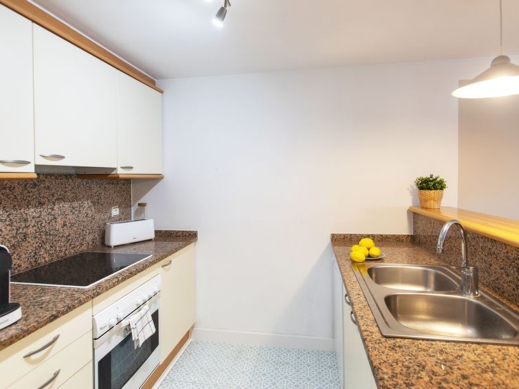 "Green Mar C", 3-room apartment 55 m2 on 3rd floor. Practical furnishings: living/dining room with satellite TV. Exit to the terrace. 2 rooms, each room with 1 double bed (2 x 80 cm, length 190 cm). Open kitchen (oven, dishwasher, 4 ceramic glass hob hotplates, microwave). Bath/WC.