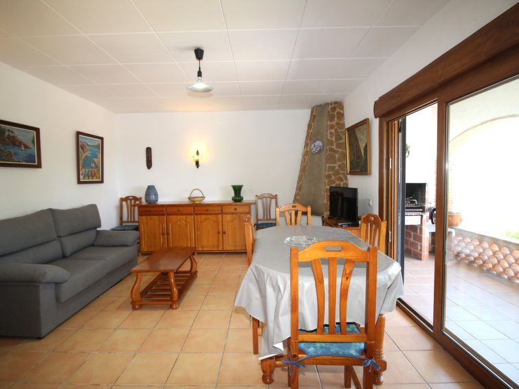 "Mas Tomasí", 3-room semi-detached house 60 m2. Object suitable for 4 adults. Simple furnishings: living/dining room with open-hearth fireplace, dining table and satellite TV. Exit to the terrace. 1 room with 1 french bed (140 cm). 1 room with 1 bed and 1 x 1 bunk beds. Kitchen (4 gas rings, electric coffee machine).