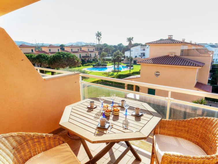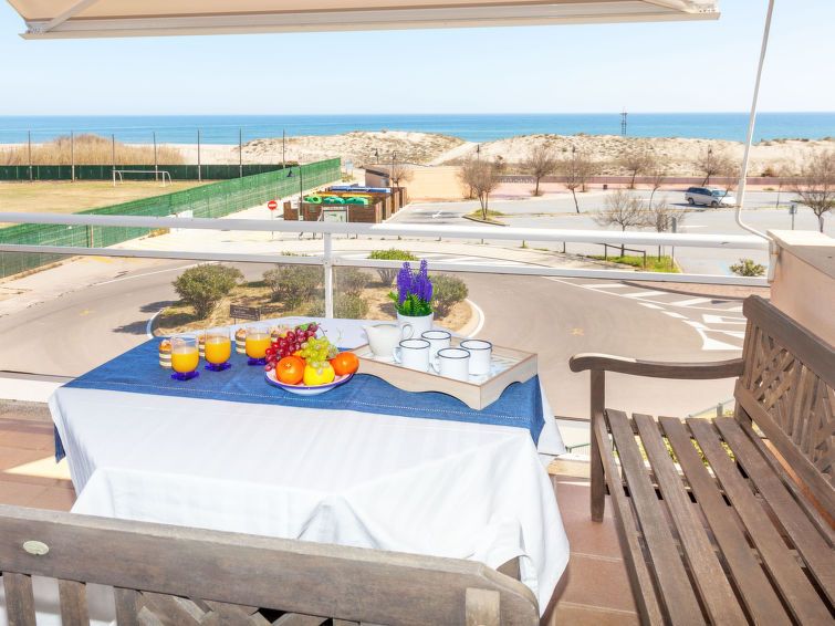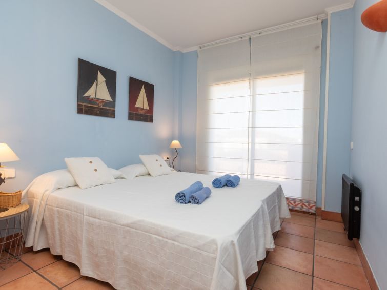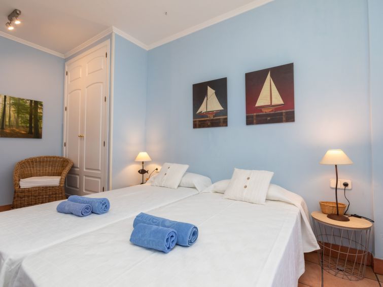"Port Pals A I", 3-room apartment 70 m2 on 2nd floor. Living/dining room with dining table, digital TV, flat screen and electric heater. Exit to the terrace. 1 room with 1 french bed (150 cm, length 190 cm), bath/WC and electric heater. Exit to the balcony. 1 room with 2 beds (90 cm, length 190 cm), electric heater.