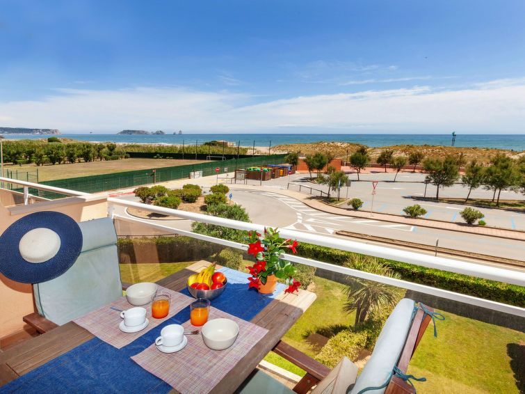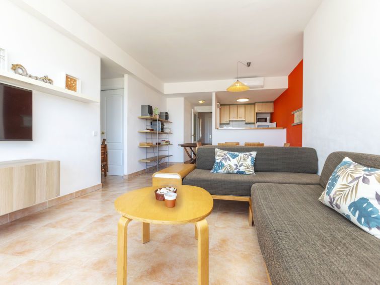 "Port Pals B II", 3-room apartment 70 m2. Living/dining room with dining table, digital TV, flat screen and air conditioning. Exit to the terrace. 1 room with 1 french bed (140 cm, length 200 cm), air conditioning. 1 room with 2 beds (90 cm, length 190 cm), air conditioning. Open kitchen (oven, dishwasher, 4 ceramic glass hob hotplates, microwave, electric coffee machine).