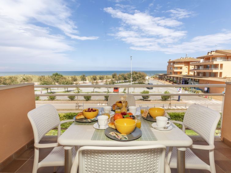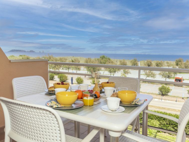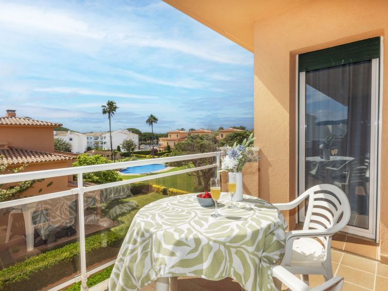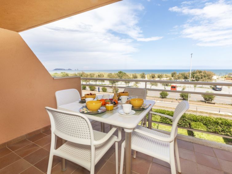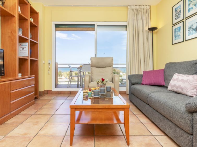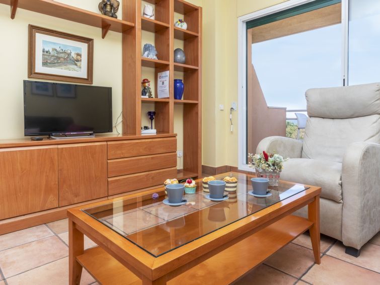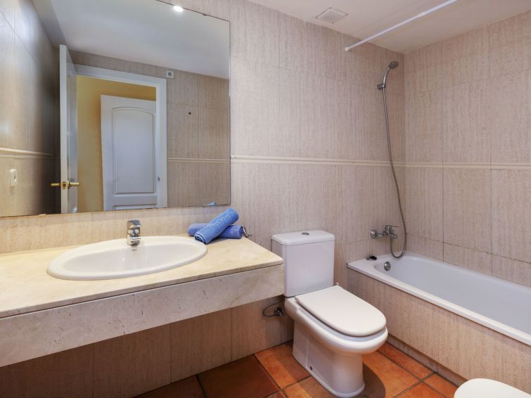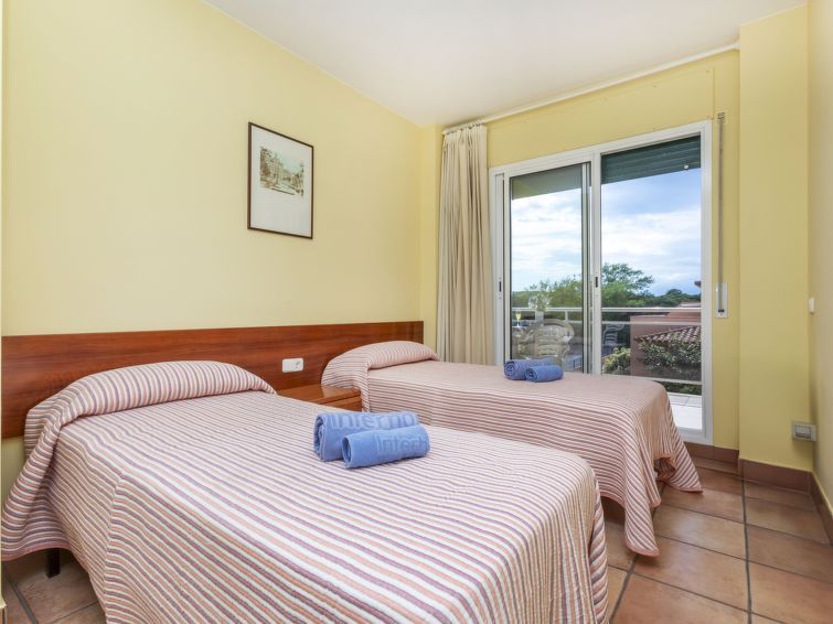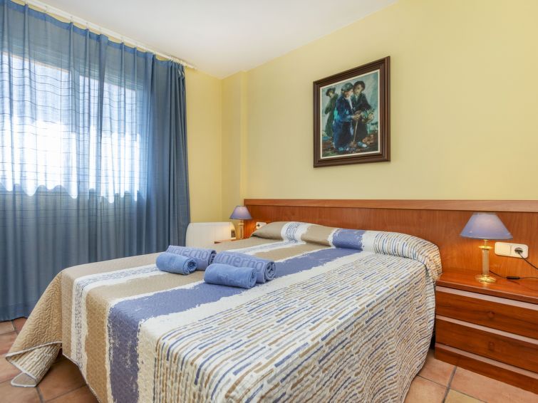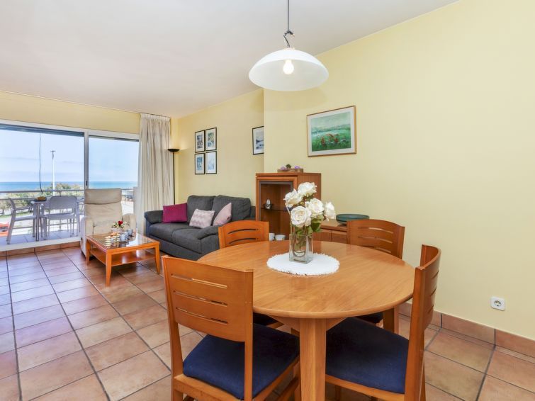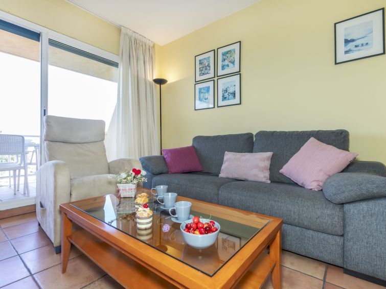 "Port Pals Sea View", 3-room apartment 90 m2 on 2nd floor. Practical furnishings: living/dining room with digital TV and electric heating. Exit to the terrace. 1 room with 1 french bed (150 cm, length 190 cm), bath/WC and electric heating. 1 room with 2 beds (80 cm, length 190 cm), electric heating.