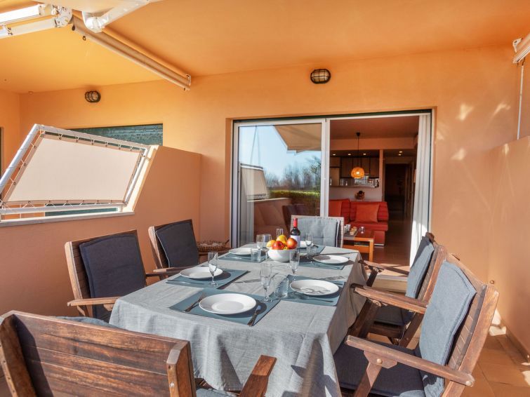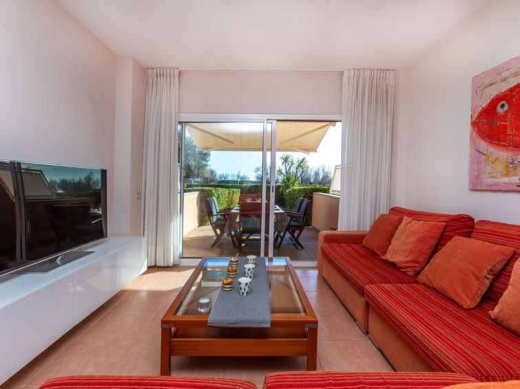 "Port Pals with garden terrace", 3-room apartment 90 m2, on the ground floor. Practical furnishings: living/dining room with digital TV and air conditioning. Exit to the patio. 1 room with 1 x 2 bunk beds (90 cm, length 190 cm). 1 room with 1 french bed (180 cm, length 200 cm). Open kitchen (oven, dishwasher, 4 ceramic glass hob hotplates, toaster, kettle, microwave, freezer, grill, electric coffee machine).