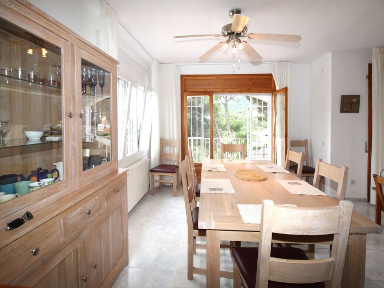 "Puig Vermell", 7-room house 150 m2 on 2 levels. Object suitable for 8 adults + 2 children. Beautiful and cosy furnishings: living/dining room with dining table and satellite TV. 1 room with 2 beds. 1 room with 1 french bed (150 cm), bath/WC. Exit to the terrace. Open kitchen (oven, dishwasher, 4 ceramic glass hob hotplates, toaster, kettle, microwave, freezer, electric coffee machine).