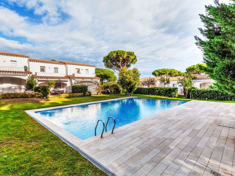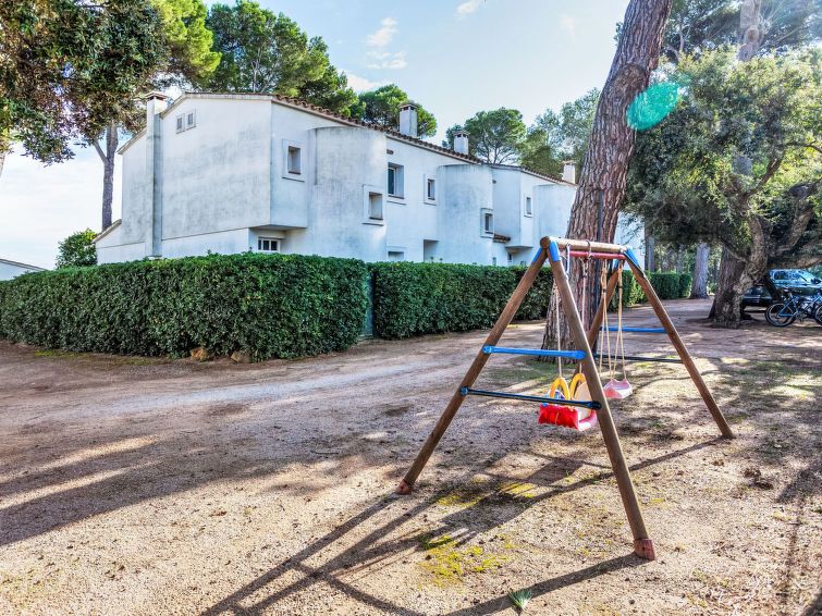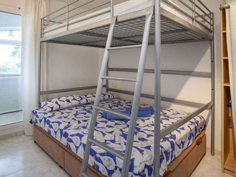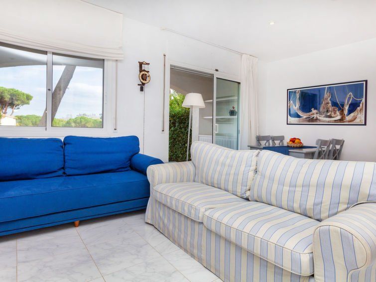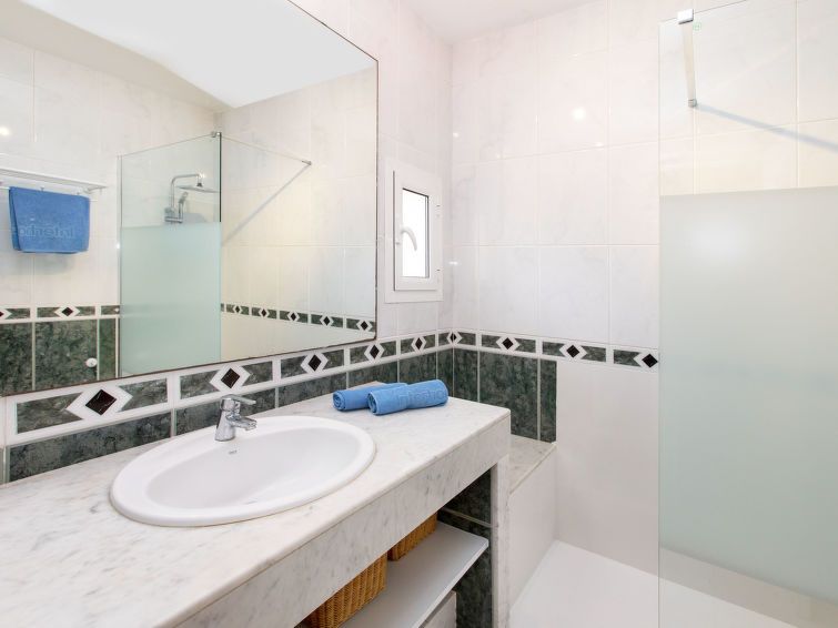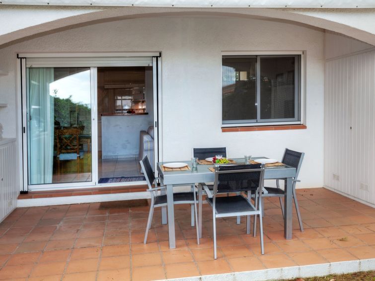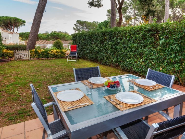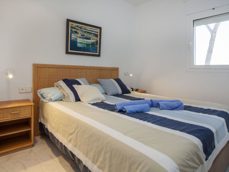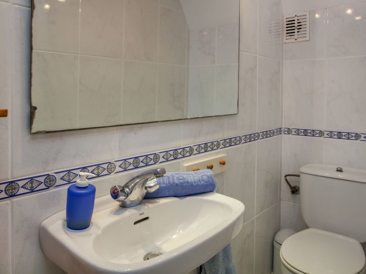 "Trebol Blanco", 3-room terraced house 80 m2 on 2 levels. Practical furnishings: living/dining room with digital TV and fan. Exit to the patio. Open kitchen (oven, dishwasher, 3 ceramic glass hob hotplates, microwave). Sep. WC. Boiler (100 litres). No heating option. Upper floor: 1 room with 1 french bed (150 cm, length 190 cm), fan.