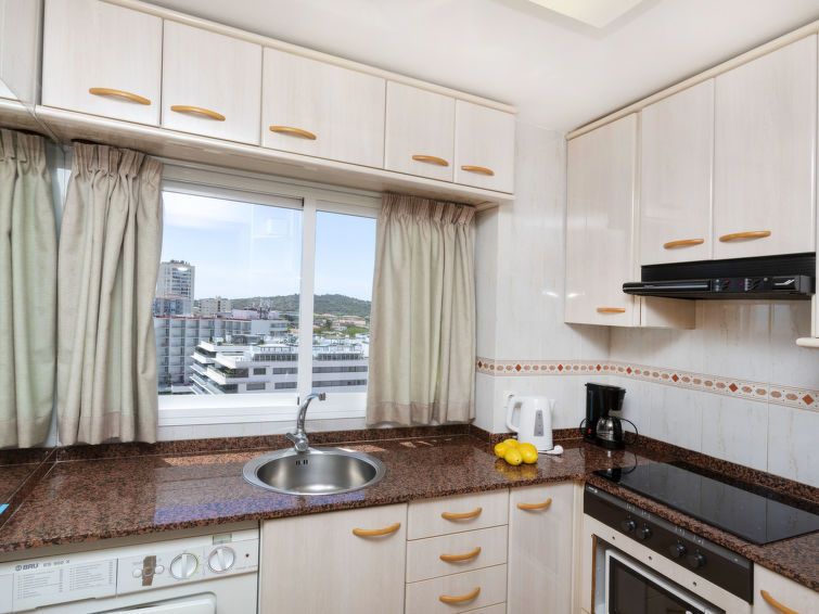 "Groc", 3-room apartment 70 m2 on 10th floor. Practical furnishings: living/dining room with digital TV. Exit to the terrace. 1 room with 1 french bed (150 cm, length 190 cm). Exit to the terrace. 1 room with 1 french bed (135 cm, length 180 cm). Kitchen (4 ceramic glass hob hotplates, toaster, kettle, microwave, electric coffee machine).
