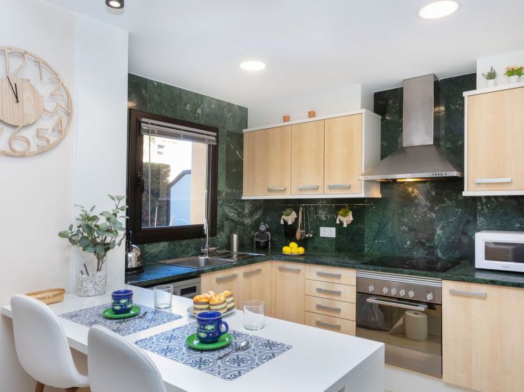 The apartment is very well-appointed and offers all the necessary amenities. The spacious, secure underground parking is definitely a plus. The pool and garden are well-maintained. The apartment is close to the city center and the beach. Everything is within walking distance.