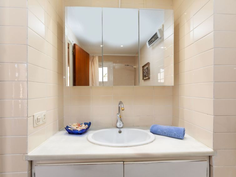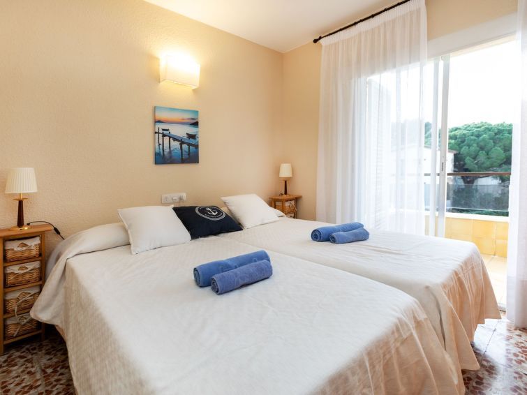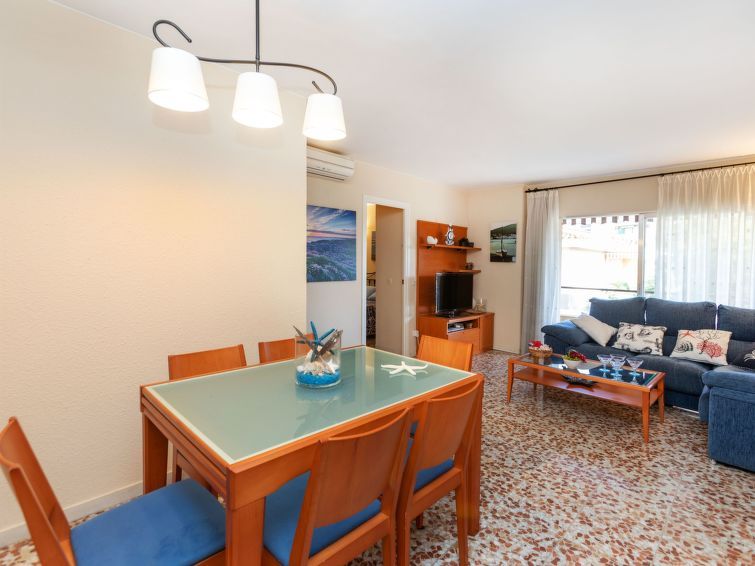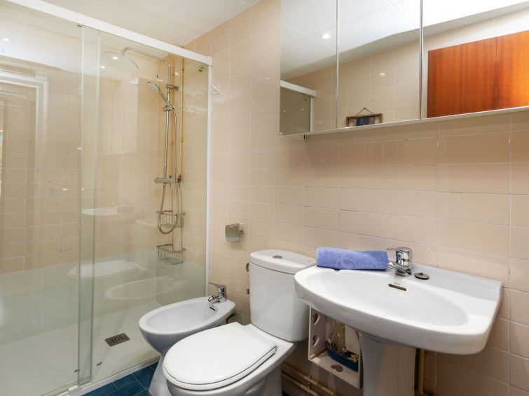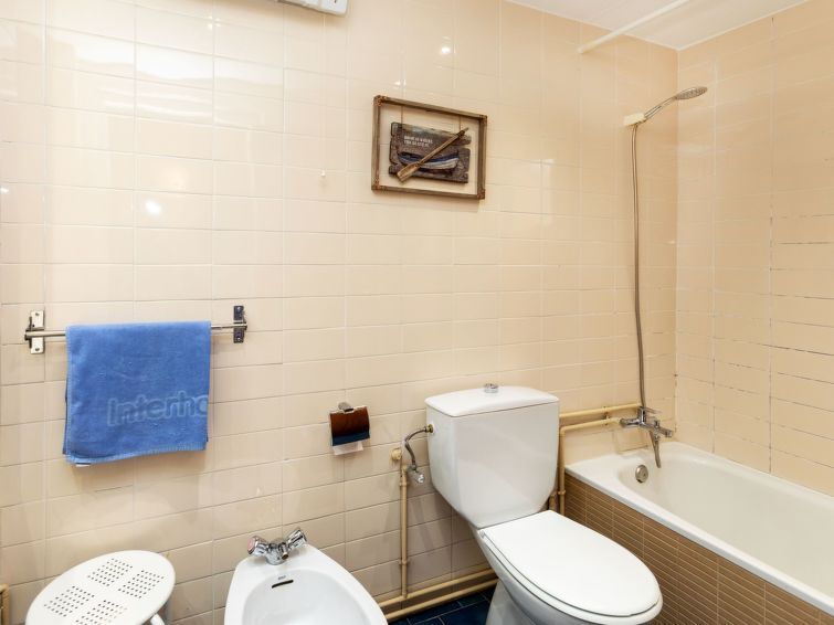 5-room apartment 80 m2 on 3rd floor. Practical furnishings: living/dining room with digital TV and air conditioning. Exit to the terrace. 1 room with 1 french bed (135 cm, length 190 cm), bath/WC. 1 room with 1 french bed (135 cm, length 190 cm). 1 room with 2 beds (90 cm, length 190 cm).
