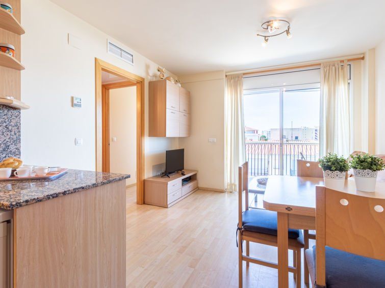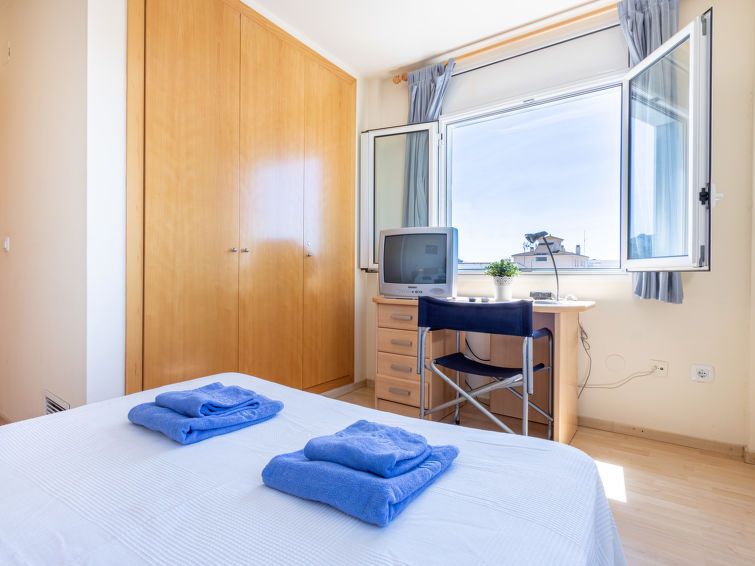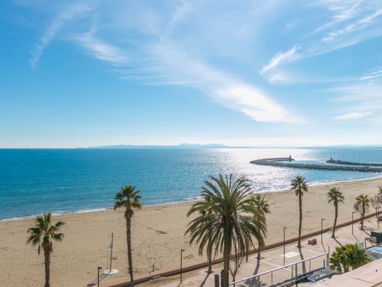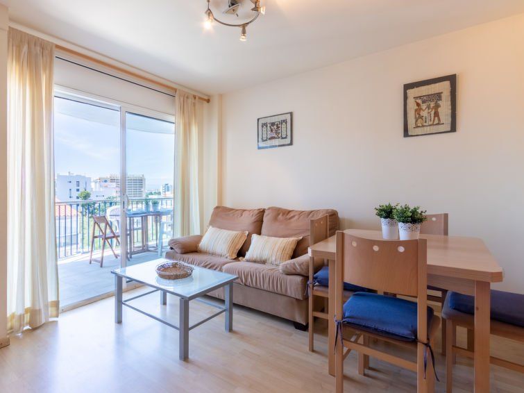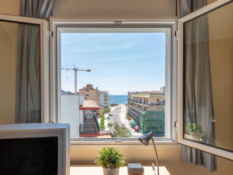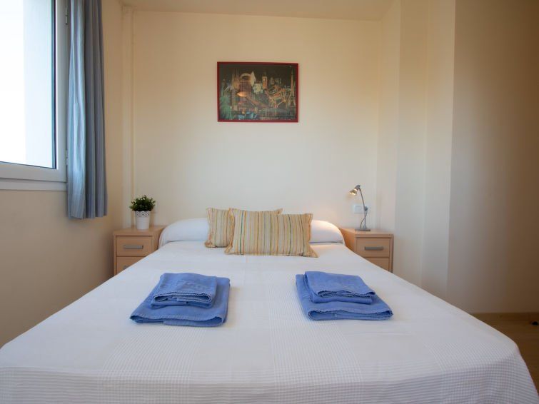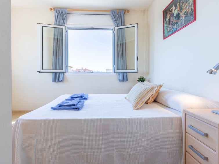3-room apartment 53 m2 on 4th floor. Practical furnishings: living/dining room with 1 sofabed, TV and air conditioning. Exit to the terrace. 1 room with 1 french bed. 1 room with 2 beds. Open kitchen (oven, 2 ceramic glass hob hotplates, microwave, electric coffee machine). Shower/WC.