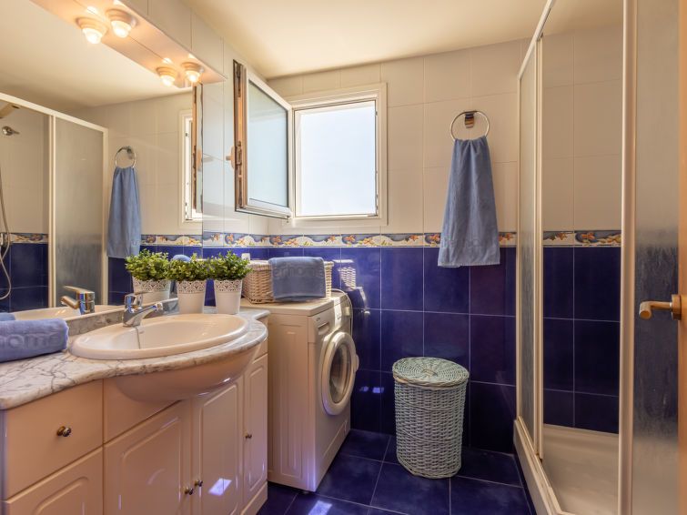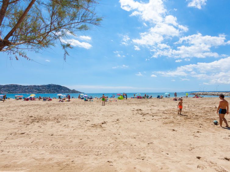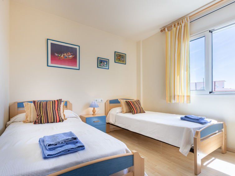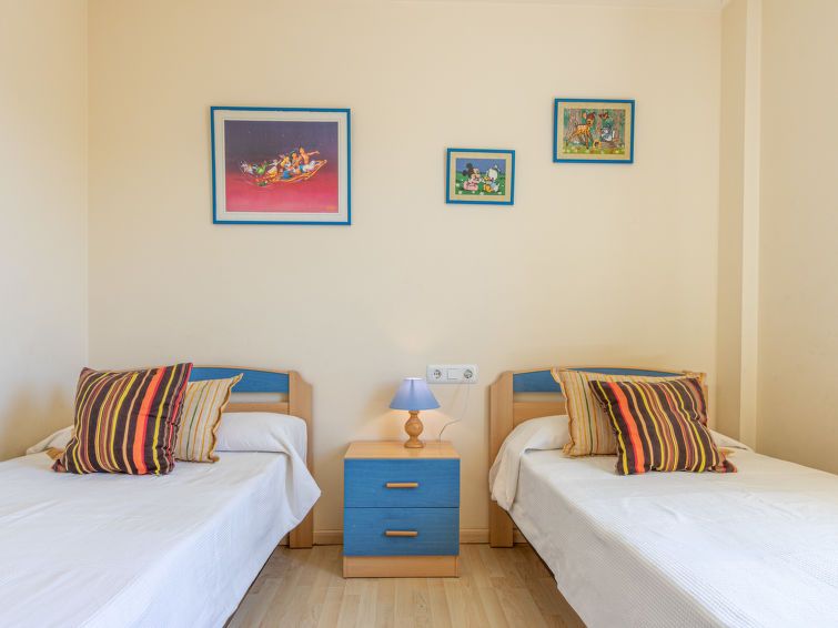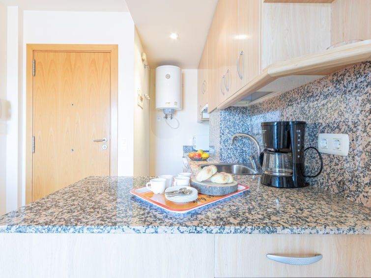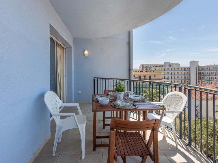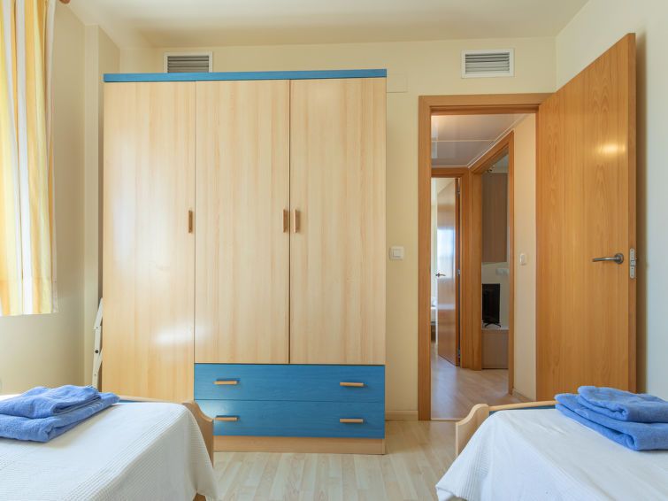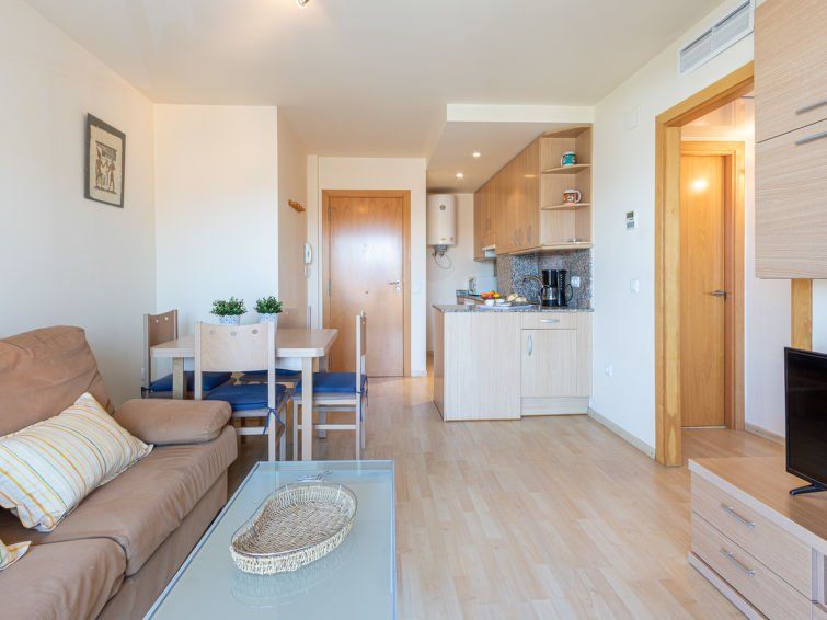 3-room apartment 53 m2 on 4th floor. Practical furnishings: living/dining room with 1 sofabed, TV and air conditioning. Exit to the terrace. 1 room with 1 french bed. 1 room with 2 beds. Open kitchen (oven, 2 ceramic glass hob hotplates, microwave, electric coffee machine). Shower/WC.