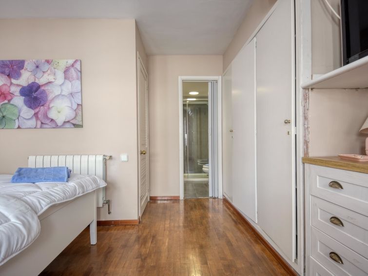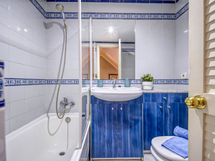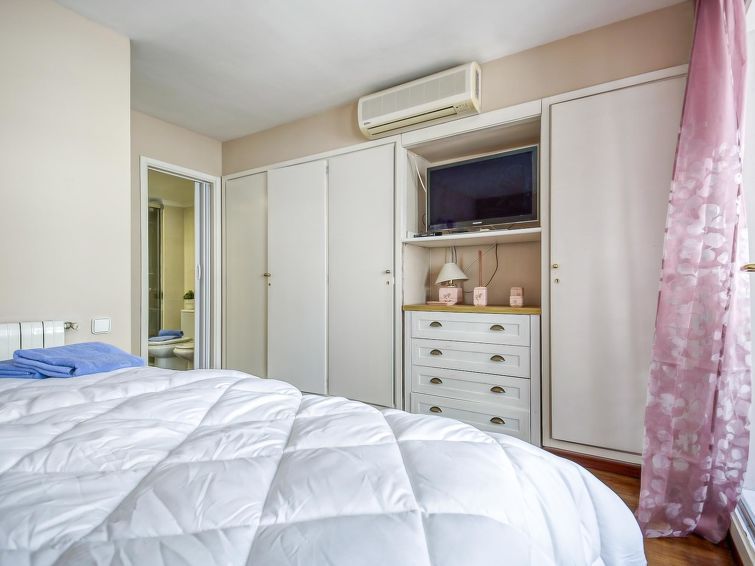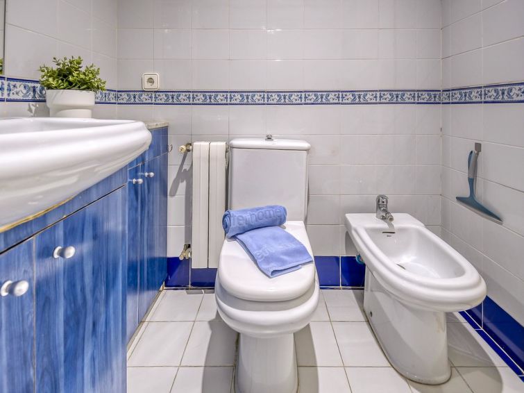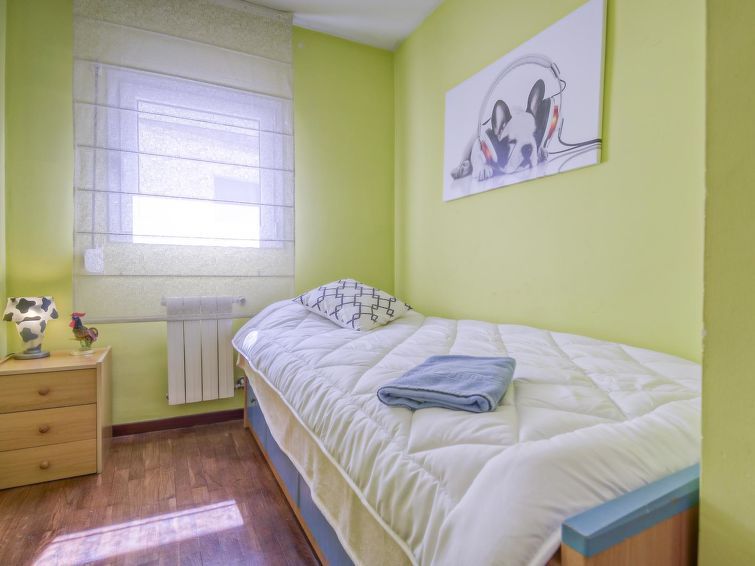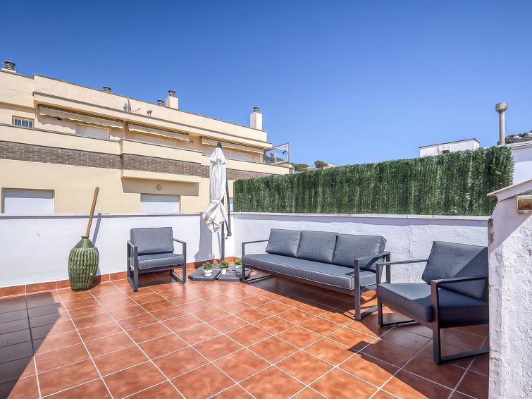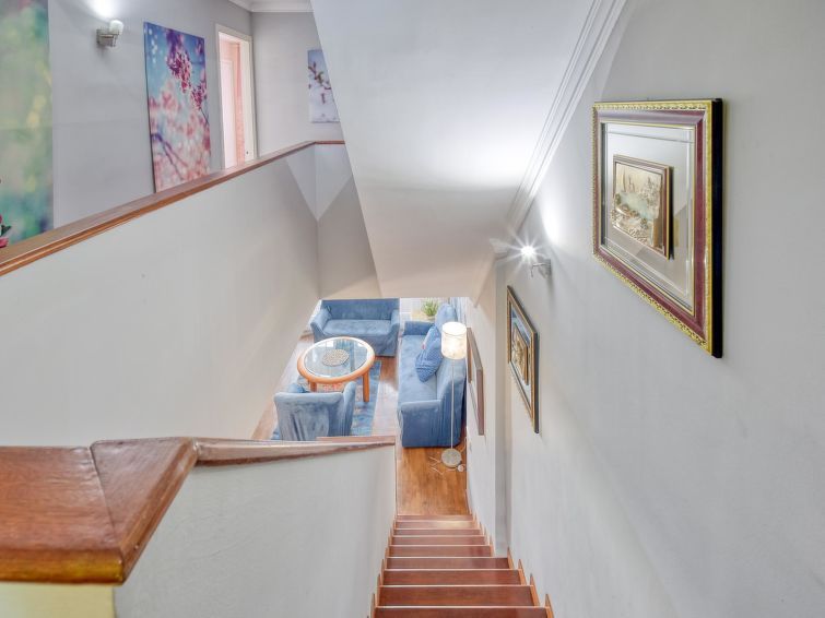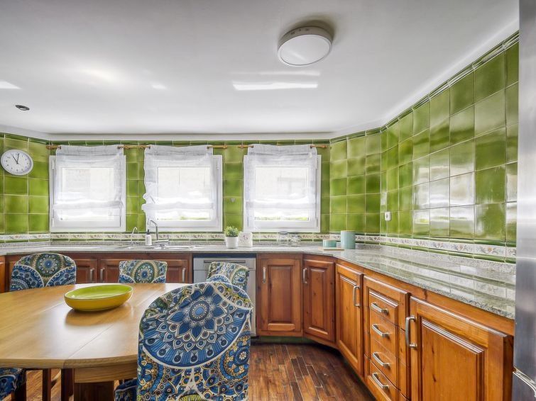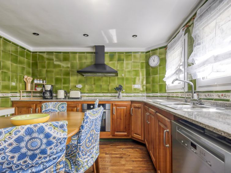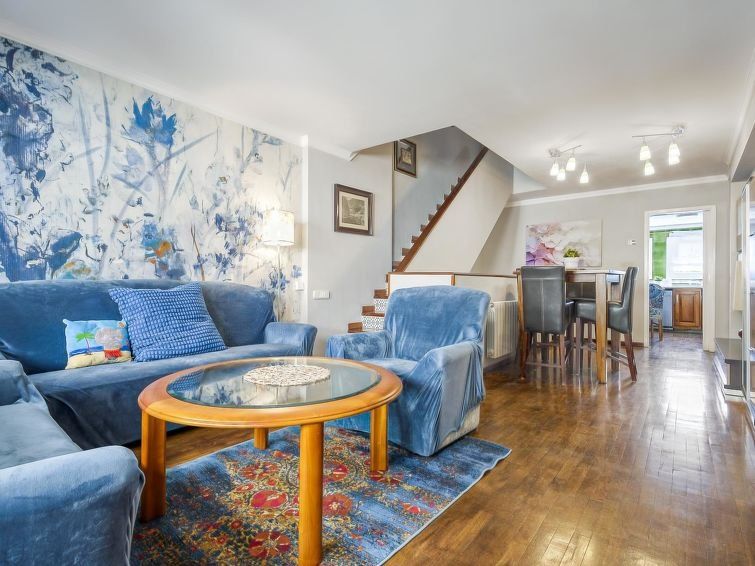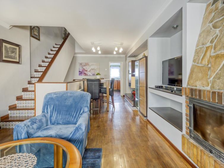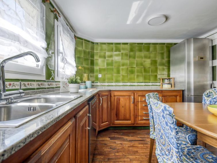 5-room terraced house 171 m2 on 3 levels. Practical furnishings: 1 room with 1 french bed (180 cm, length 200 cm). Exit to the terrace. Upper floor: living/dining room with satellite TV. Large kitchen (oven, dishwasher, 3 ceramic glass hob hotplates, toaster, kettle, freezer, electric coffee machine).