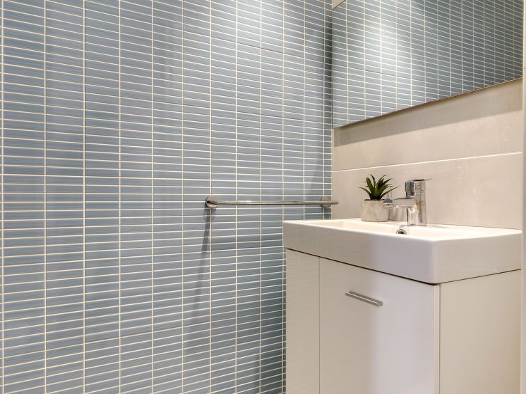 3-room apartment 65 m2 on 1st floor. Simple furnishings: living/dining room with satellite TV and digital TV (flat screen). Exit to the balcony. 1 room with 1 french bed (135 cm, length 190 cm). 1 room with 2 beds. Open kitchen (3 ceramic glass hob hotplates, microwave, freezer, electric coffee machine) with bar.
