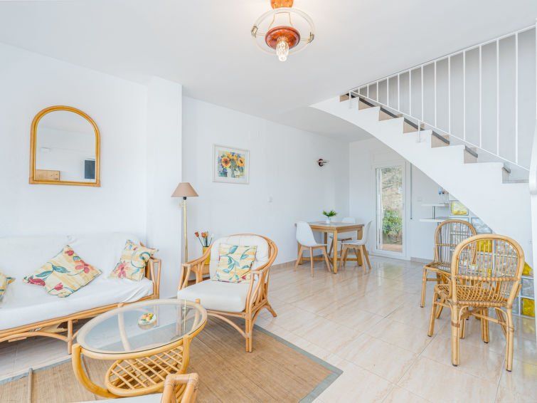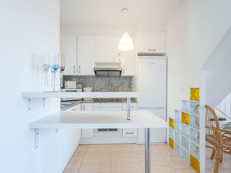 "Prisange", 3-room terraced house 70 m2 on 2 levels, south-west facing position. Practical furnishings: living/dining room with dining table and satellite TV. Exit to the terrace, south facing position and west facing position. Open kitchen (oven, 4 ceramic glass hob hotplates, toaster, kettle, microwave, freezer, electric coffee machine).