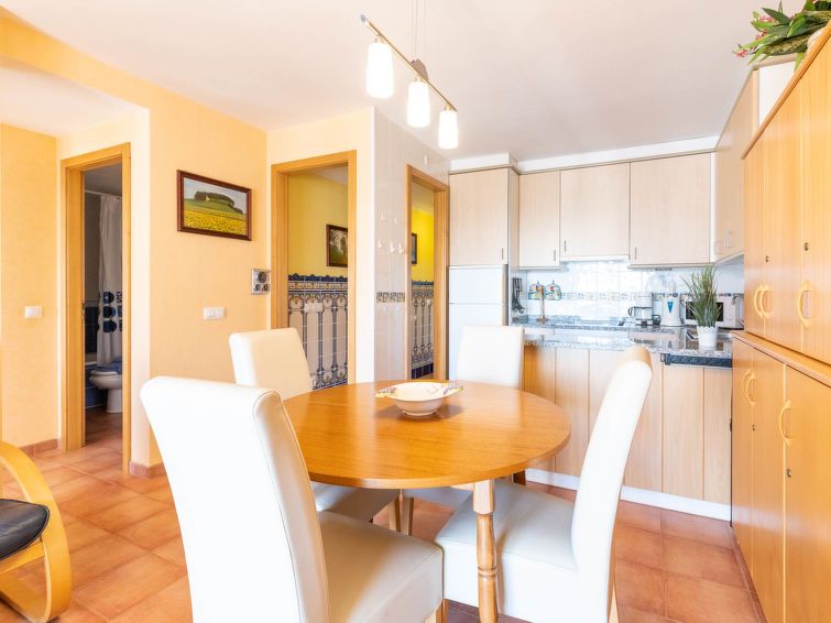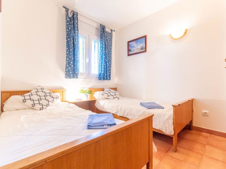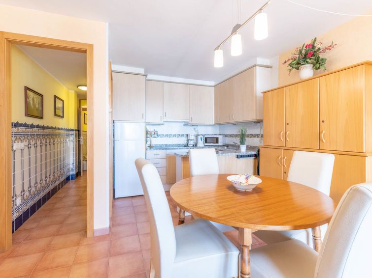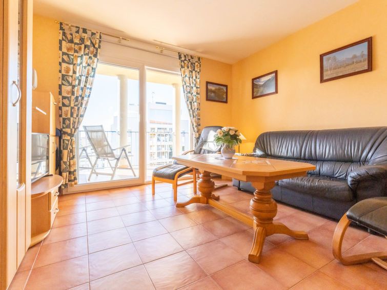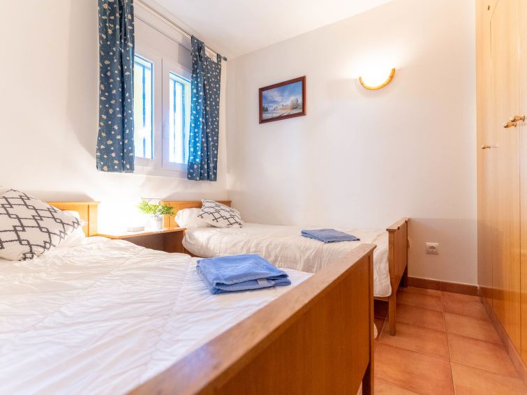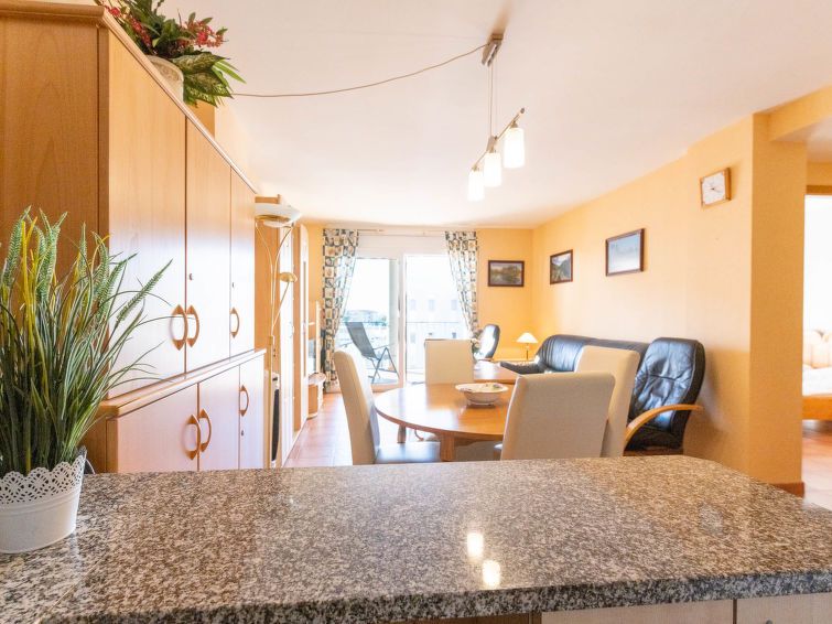 3-room apartment 62 m2. Spacious, practical furnishings: living/dining room with dining table and satellite TV. Exit to the terrace. 1 room with 1 french bed (2 x 90 cm, length 200 cm). 1 room with 2 beds (90 cm, length 200 cm). Kitchen (4 hot plates, toaster, kettle, microwave, freezer, electric coffee machine).