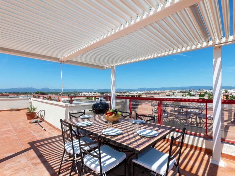 "Ancora Ático", 3-room penthouse 89 m2 on 2 levels on 5th floor. Spacious, comfortable and cosy furnishings: living/dining room with dining nook, digital TV, air conditioning and forced-air heating. Exit to the terrace. 1 room with 1 french bed (160 cm, length 190 cm). 1 room with 2 beds (90 cm, length 190 cm).