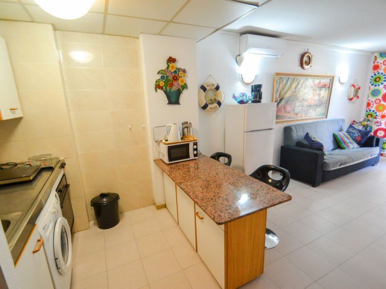 "Catalunya 10", 3-room apartment 45 m2 on 1st floor. Object suitable for 2 adults + 2 children. Simple and practical furnishings: living/dining room with sliding door with 1 sofabed (120 cm, length 190 cm), digital TV, air conditioning and forced-air heating. Exit to the balcony. 1 room with 1 french bed (130 cm, length 190 cm).