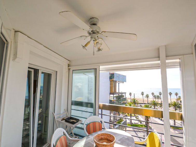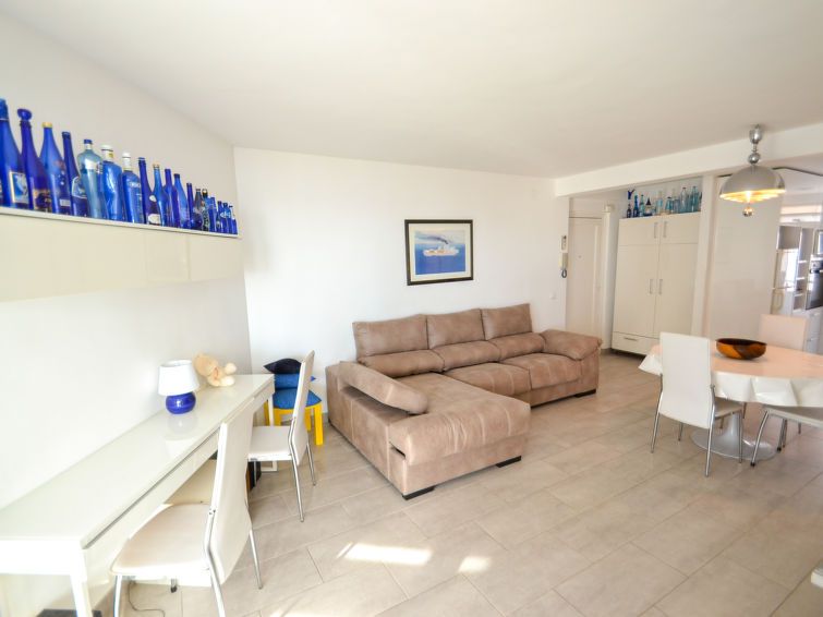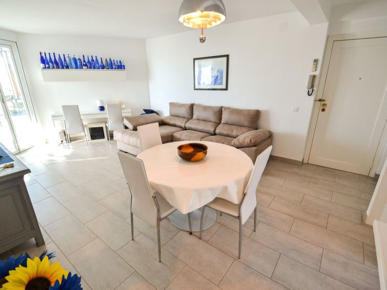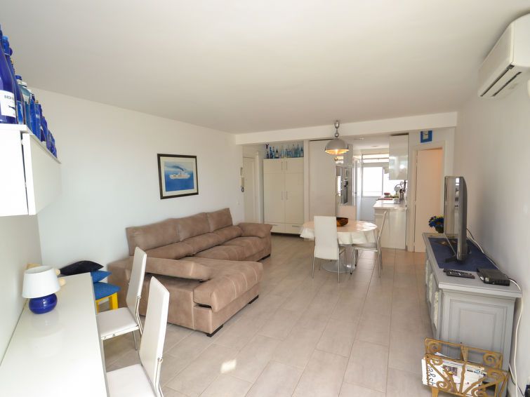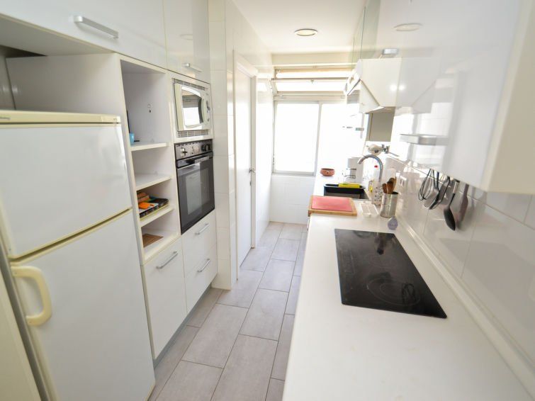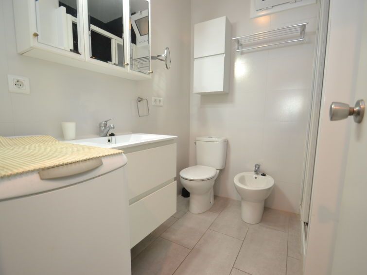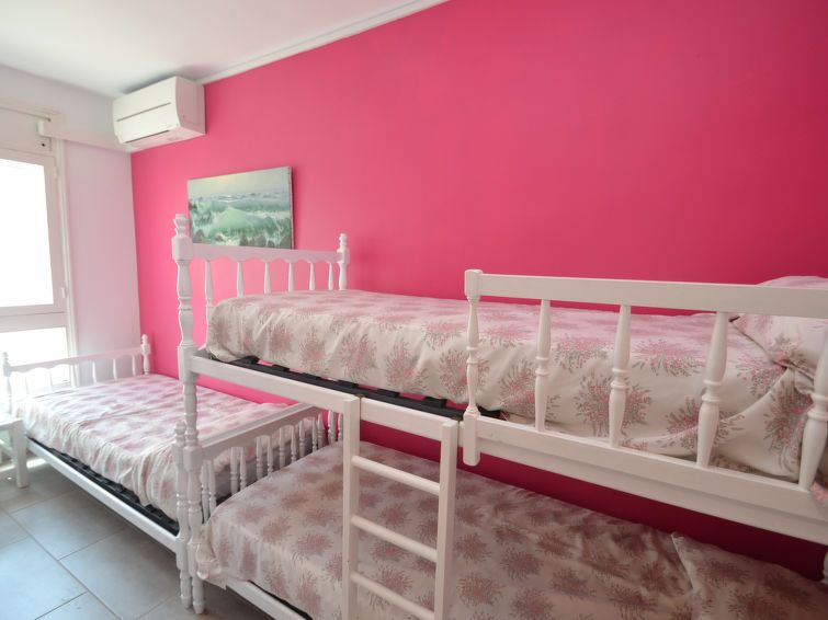 3-room apartment 70 m2 on 6th floor. Bright, comfortable and beautiful furnishings: living/dining room with dining table, digital TV and air conditioning. Exit to the terrace. 1 room with 1 double bed (2 x 90 cm, length 190 cm), TV and air conditioning. Exit to the terrace. 1 room with 1 bed (80 cm, length 190 cm), 1 x 2 bunk beds (80 cm, length 190 cm), shower/WC and air conditioning.