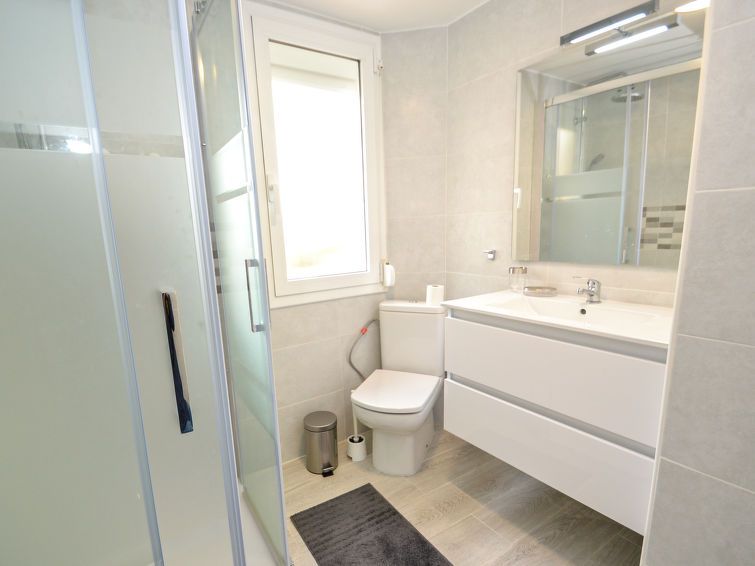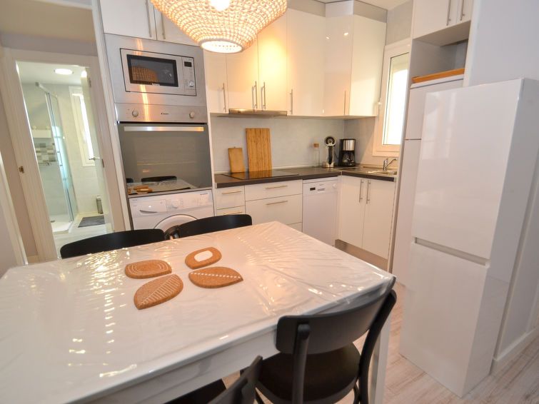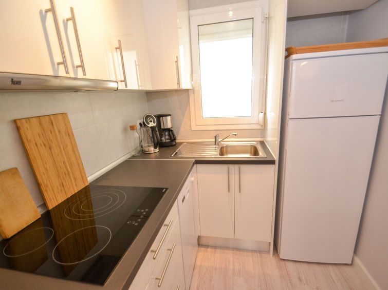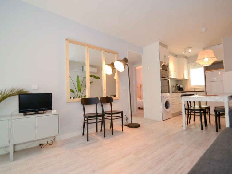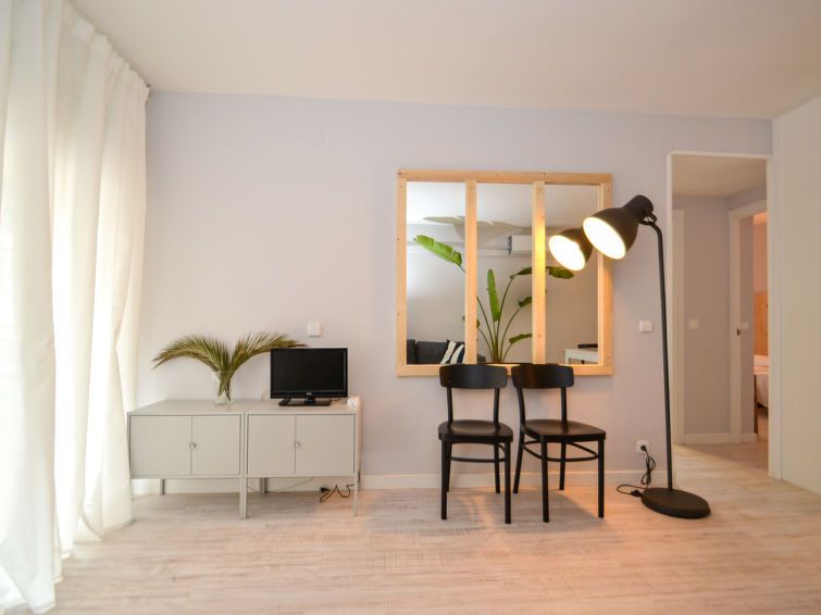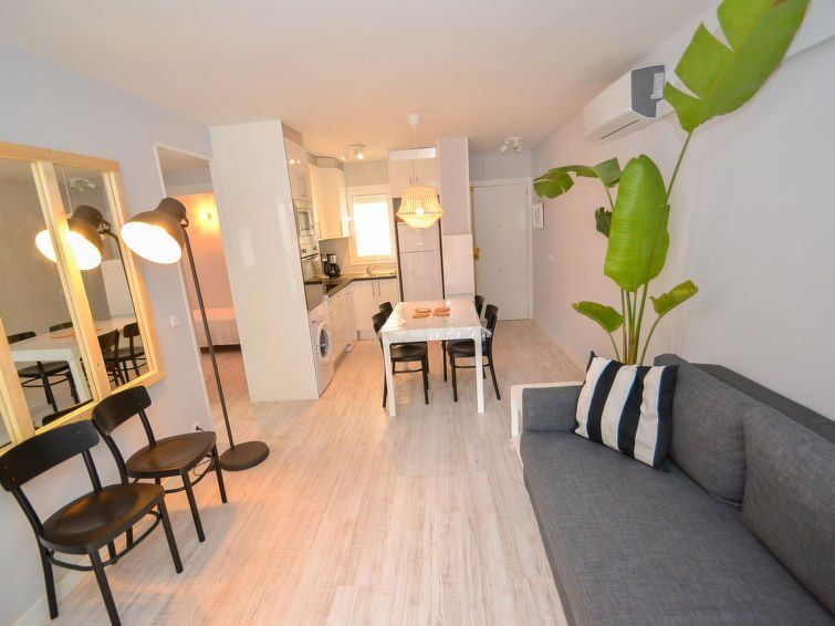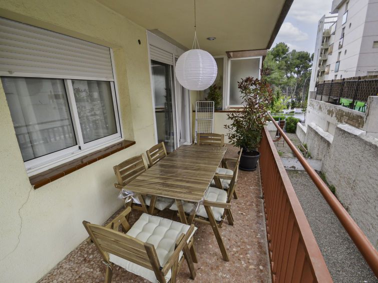 "Gavina Salou", 3-room apartment 50 m2 on 1st floor. Object suitable for 4 adults + 1 child. Simple and practical furnishings: living/dining room with sliding door with 1 sofabed (130 cm, length 190 cm), digital TV, air conditioning and forced-air heating. Exit to the terrace. 1 room with 1 french bed (135 cm, length 190 cm).