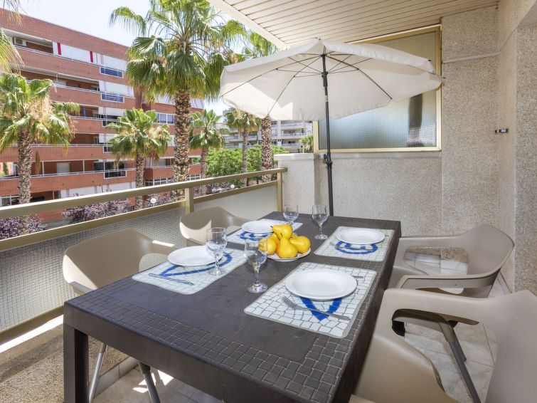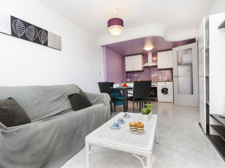 "Jardines Family 205", 2-room apartment 50 m2 on 2nd floor. Practical and comfortable furnishings: living/dining room with 1 double sofabed, air conditioning and forced-air heating. Exit to the terrace. 1 room with 1 french bed, air conditioning and forced-air heating. Open kitchen (oven, 3 ceramic glass hob hotplates, toaster, kettle, microwave, freezer, electric coffee machine).
