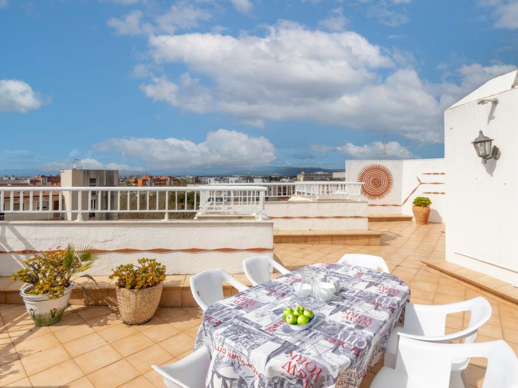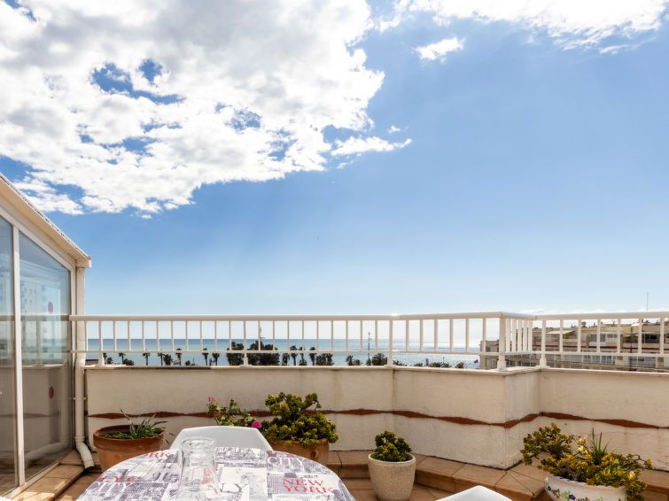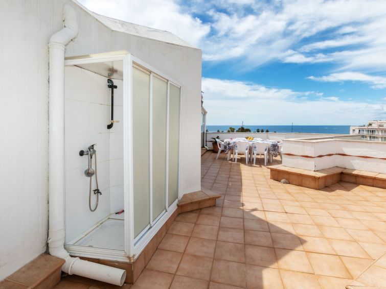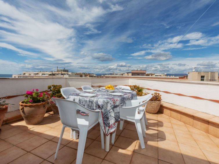 "Jazmin", 4-room penthouse 120 m2 on 2 levels. Spacious, practical furnishings: living/dining room with digital TV. Exit to the terrace. 1 room with 1 french bed (1 x 150 cm, length 190 cm), bath/WC. Kitchen (oven, 3 ceramic glass hob hotplates, toaster, kettle, microwave, freezer, electric coffee machine, Capsules for coffee machine (Dolce Gusto) extra) with boiler (100 litres).