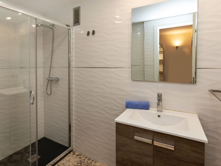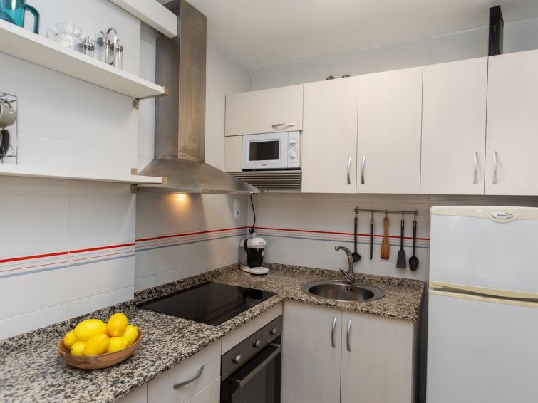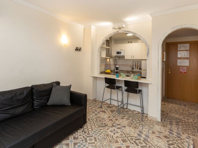 "Jerez", 2-room apartment 53 m2. Practical and beautiful furnishings: living/dining room 53 m2 with 1 sofabed (135 cm, length 190 cm), TV (flat screen), air conditioning and forced-air heating. 1 room with 1 french bed (135 cm, length 190 cm). Exit to the terrace. Open kitchen (oven, 3 ceramic glass hob hotplates, toaster, kettle, microwave, freezer, electric coffee machine, Capsules for coffee machine (Bosch Tassimo)) with bar.