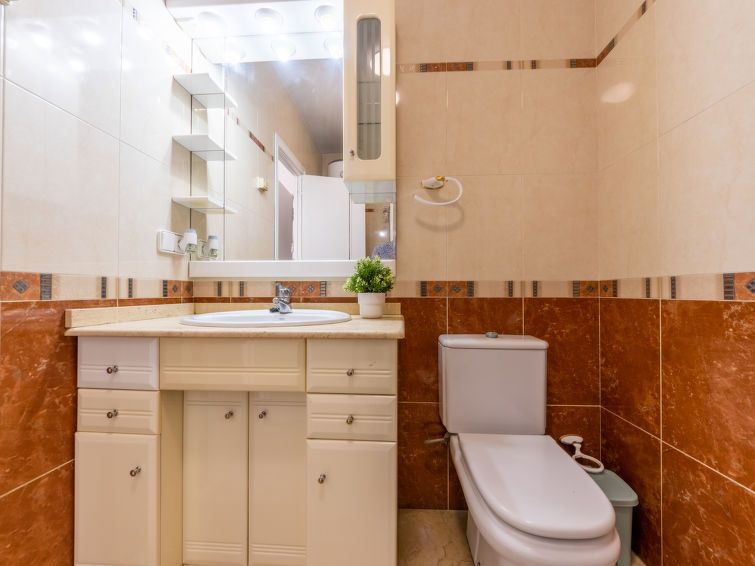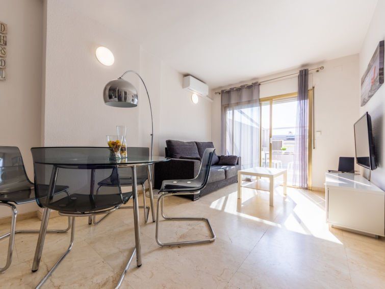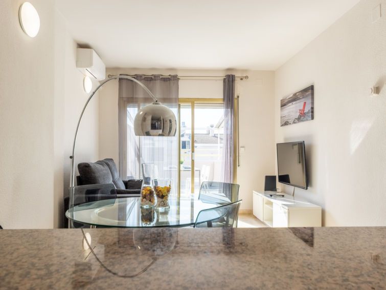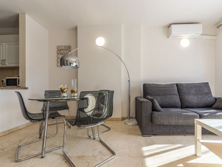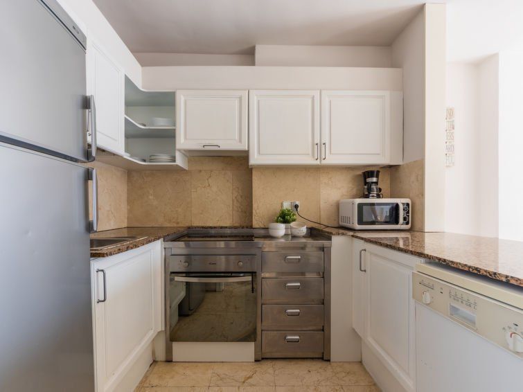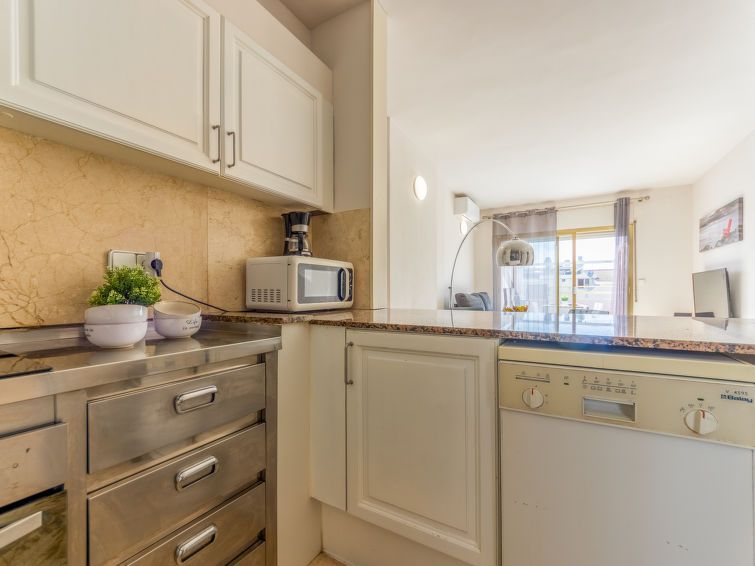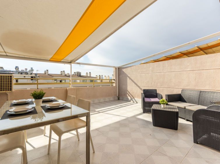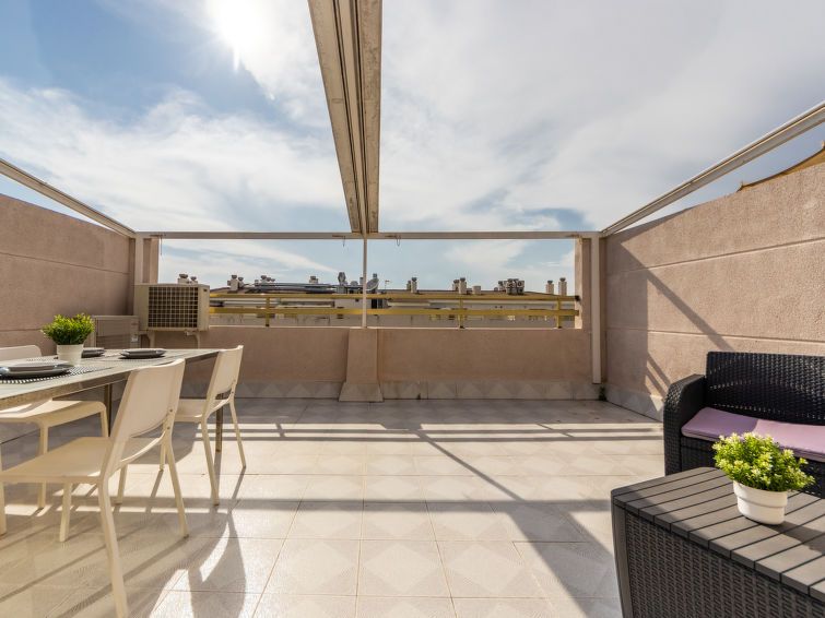 2-room penthouse 40 m2. Bright, practical and comfortable furnishings: living/dining room with 1 double sofabed, digital TV, air conditioning and forced-air heating. Exit to the terrace. 1 room with 1 french bed (140 cm, length 190 cm). Exit to the terrace. Open kitchen (oven, 3 ceramic glass hob hotplates, toaster, kettle, microwave, freezer, electric coffee machine).