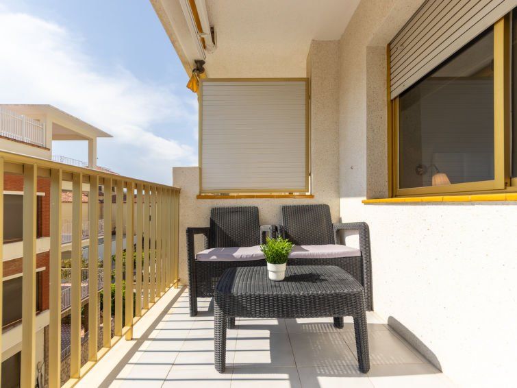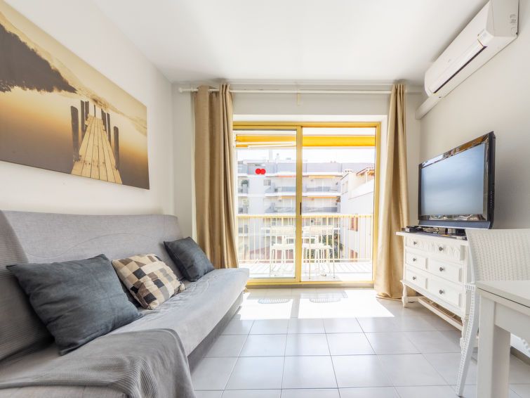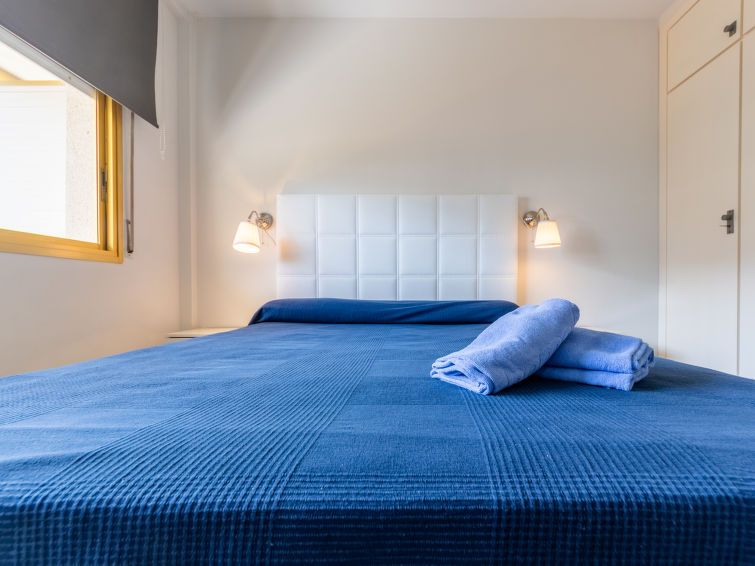 "Miramar Nautic", 2-room apartment 45 m2 on 3rd floor. Bright, practical furnishings: living/dining room with 1 double sofabed, satellite TV, air conditioning and forced-air heating. Exit to the balcony. 1 room with 1 french bed (140 cm, length 190 cm). Open kitchen (3 ceramic glass hob hotplates, toaster, microwave, electric coffee machine).
