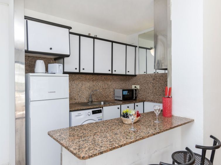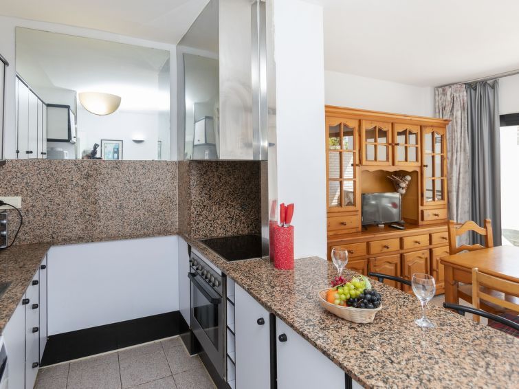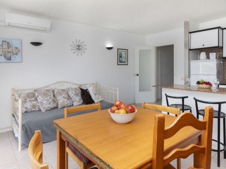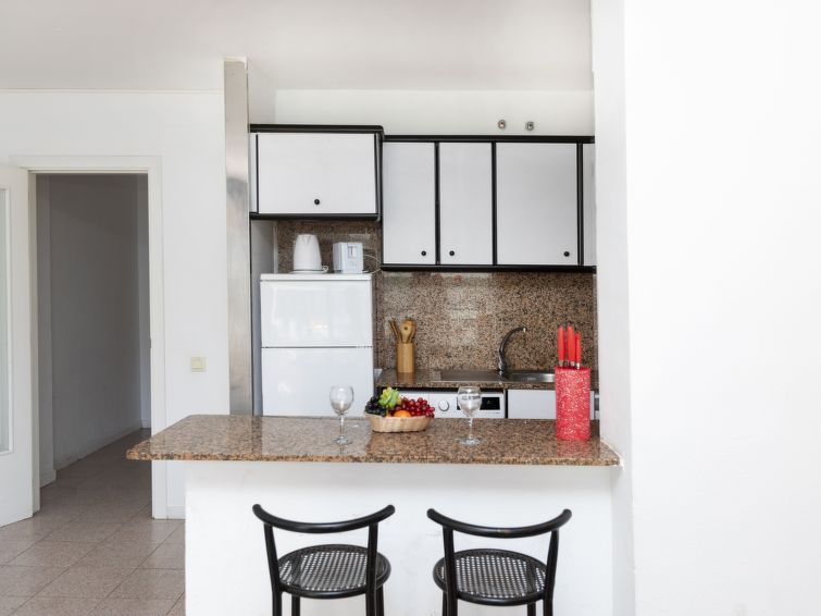 "Riviera Park J 22", 2-room apartment 40 m2. Practical and cosy furnishings: living/dining room with 1 sofabed and digital TV. Exit to the terrace. 1 room with 2 beds (90 cm, length 190 cm). Open kitchen (oven, 4 ceramic glass hob hotplates, kettle, microwave, freezer, electric coffee machine) with bar.
