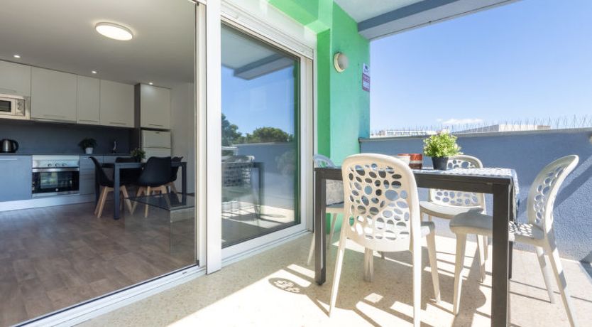 "Sama", 2-room apartment 56 m2 on 5th floor. Object suitable for 2 adults + 1 child. Simple and practical furnishings: living/dining room with digital TV and air conditioning. Exit to the balcony. 1 room with 2 beds (90 cm, length 190 cm). Open kitchen (4 ceramic glass hob hotplates, toaster, kettle, microwave, electric coffee machine).